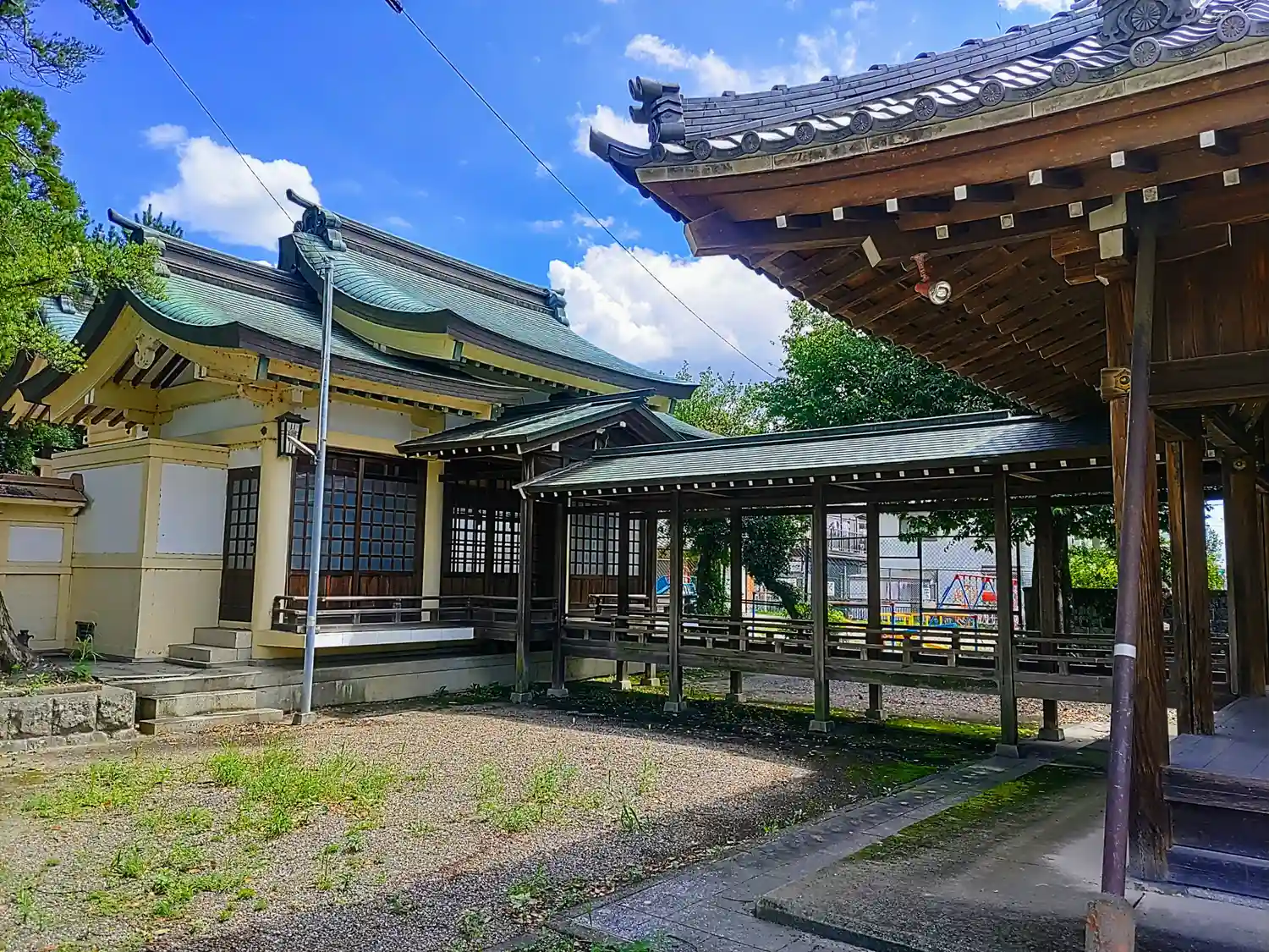 通常、拝殿から本殿につなぐ建物は一直線だが、こちらの白山さんは拝殿から本殿に向かう線が少し右にずれ…