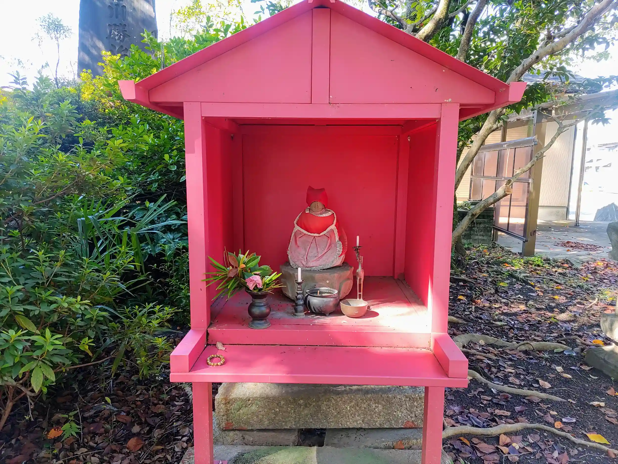 近所のお婆さんが参拝しに来ました。邪魔にならないように写真撮影。