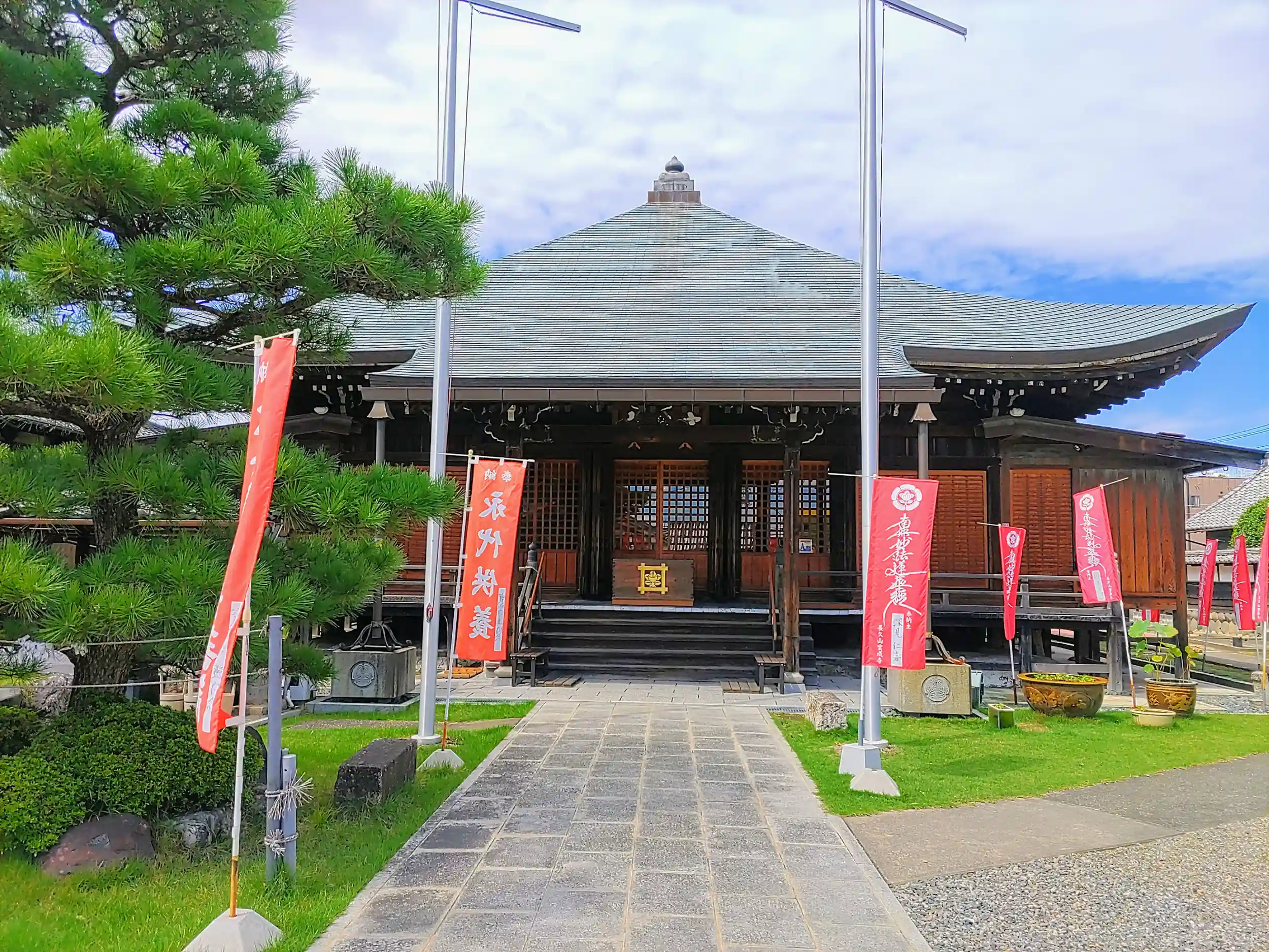 日蓮宗のお寺さんです。もともとは真言宗だったらしく本堂などは真言宗の様式が多く残されたものらしいです。どこが真言宗なのか私には分かりませんですけどね。