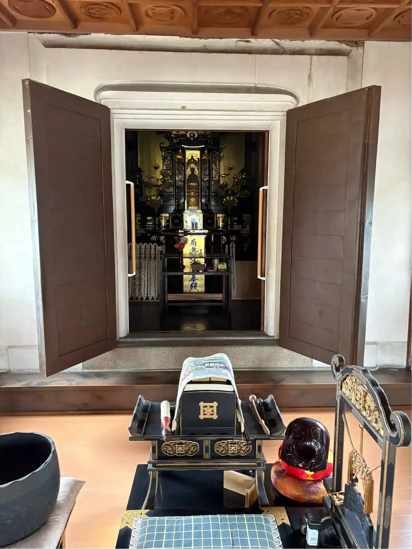 本堂内ではちょうど掃除をされている真っ最中だったため本堂内には入らず、外から手を合わさせていただきました。