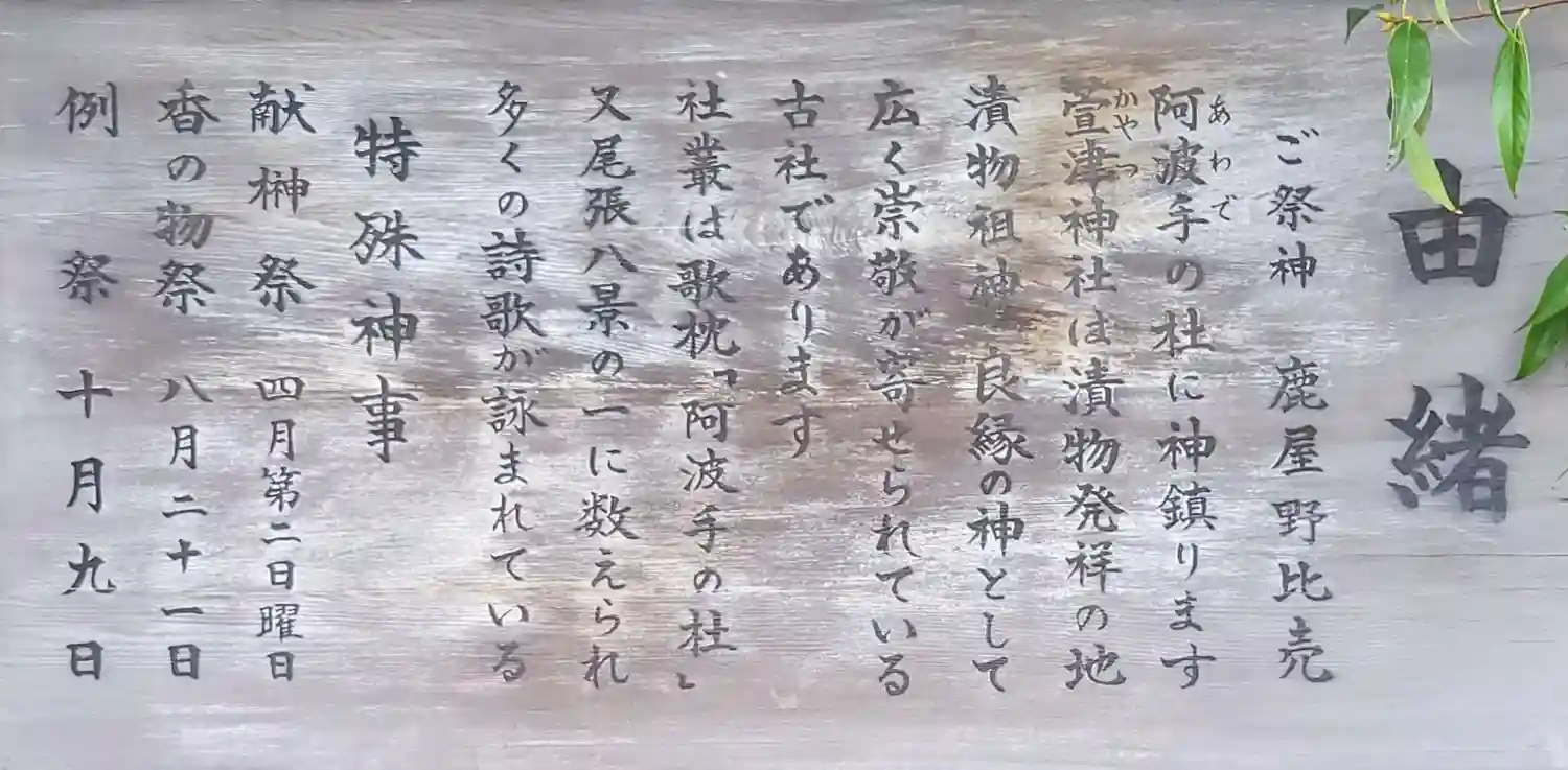 愛知県あま市の萱津神社です。御祭神は鹿屋野比売神です。