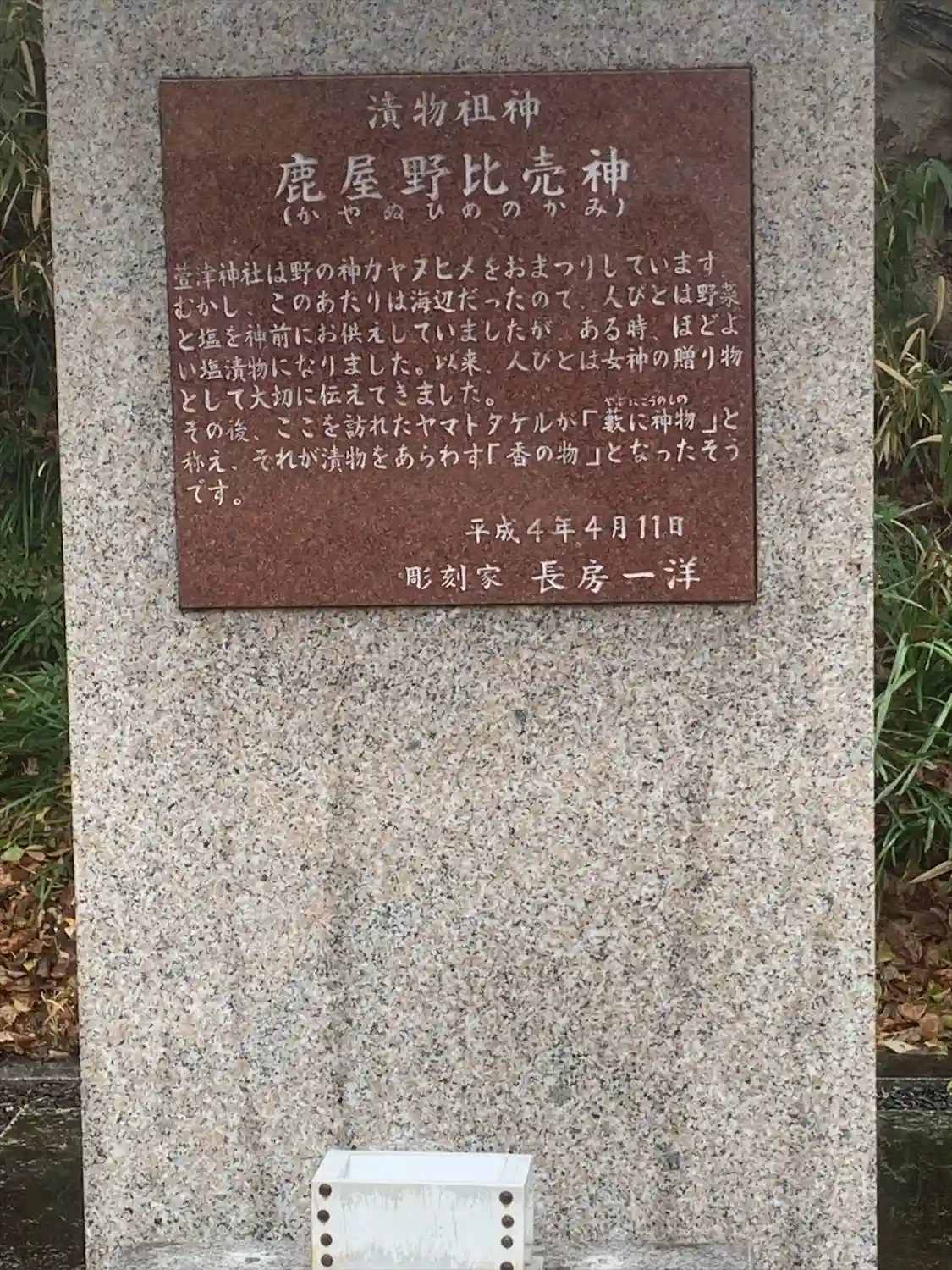 野を司る鹿屋野比売神を祀る唯一の漬物の祖神。