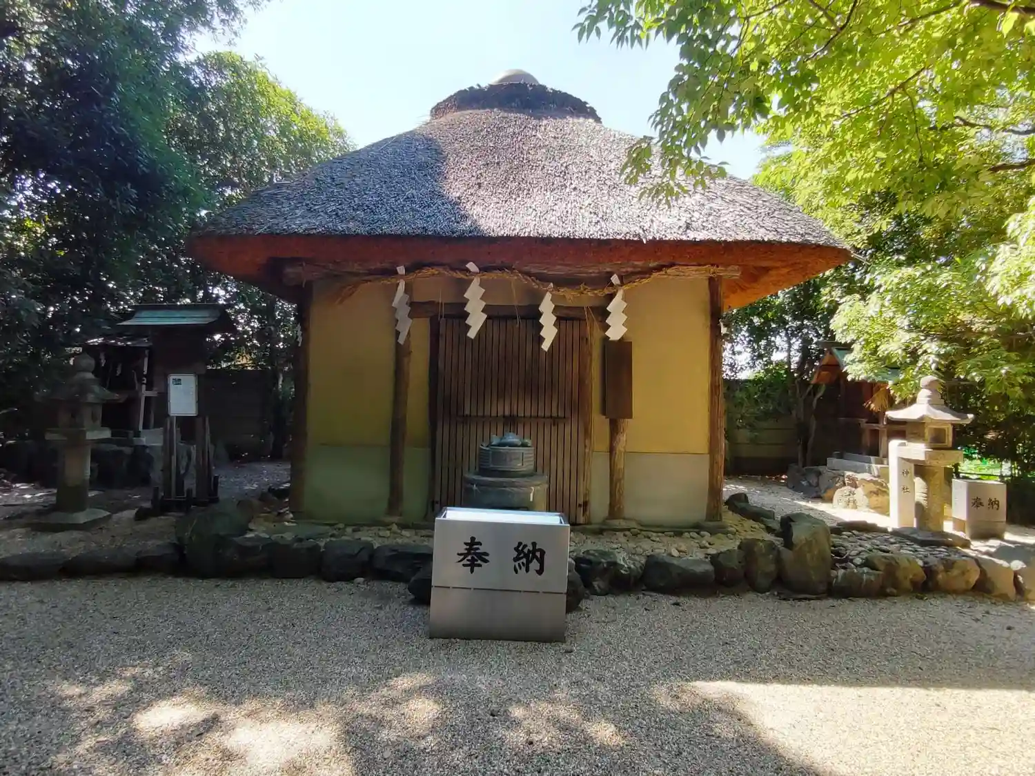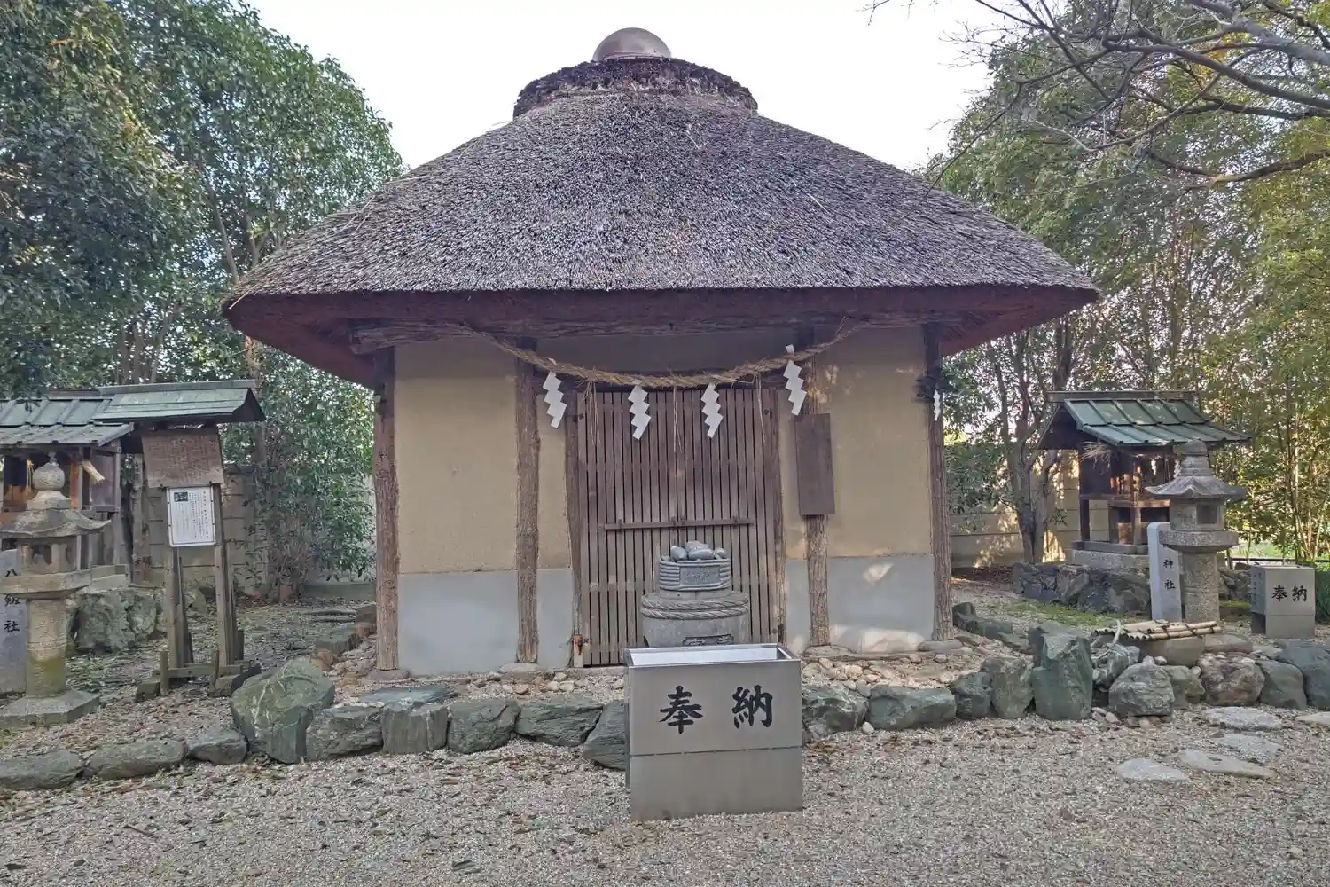 藁葺の建物が境内に!😲