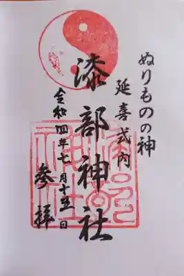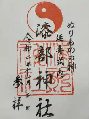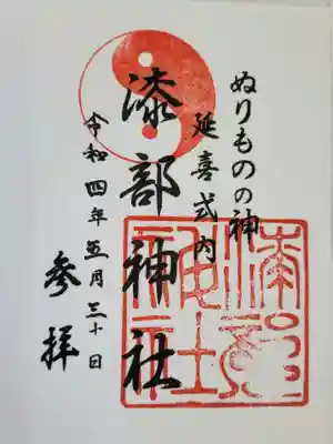 ![漆部神社の御朱印]()