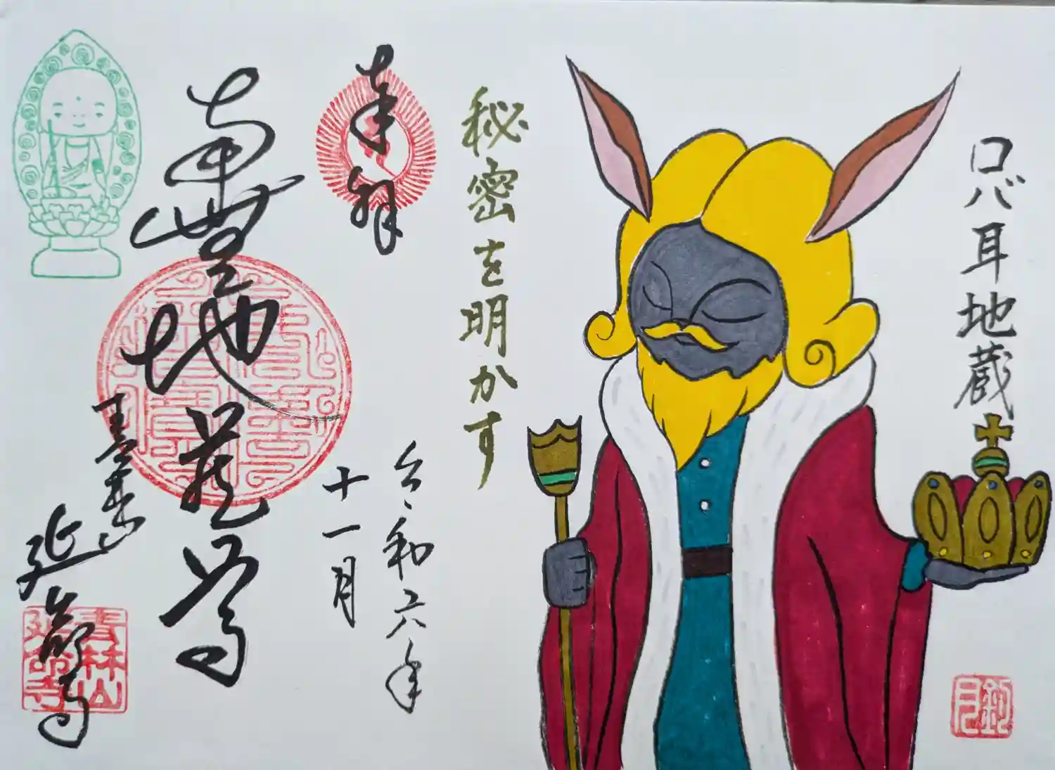 書き置き御朱印のかぐや地蔵