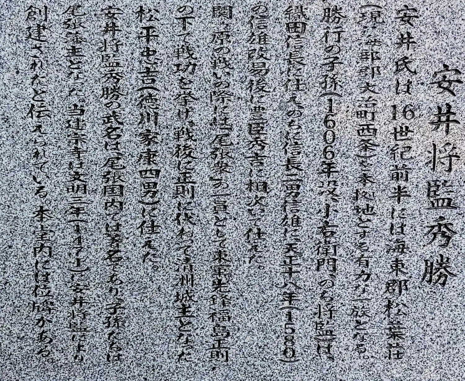 住宅に囲まれている境内には大きな本堂があります。織田、豊臣、徳川に仕えた安井将監秀久の墓があるよう…