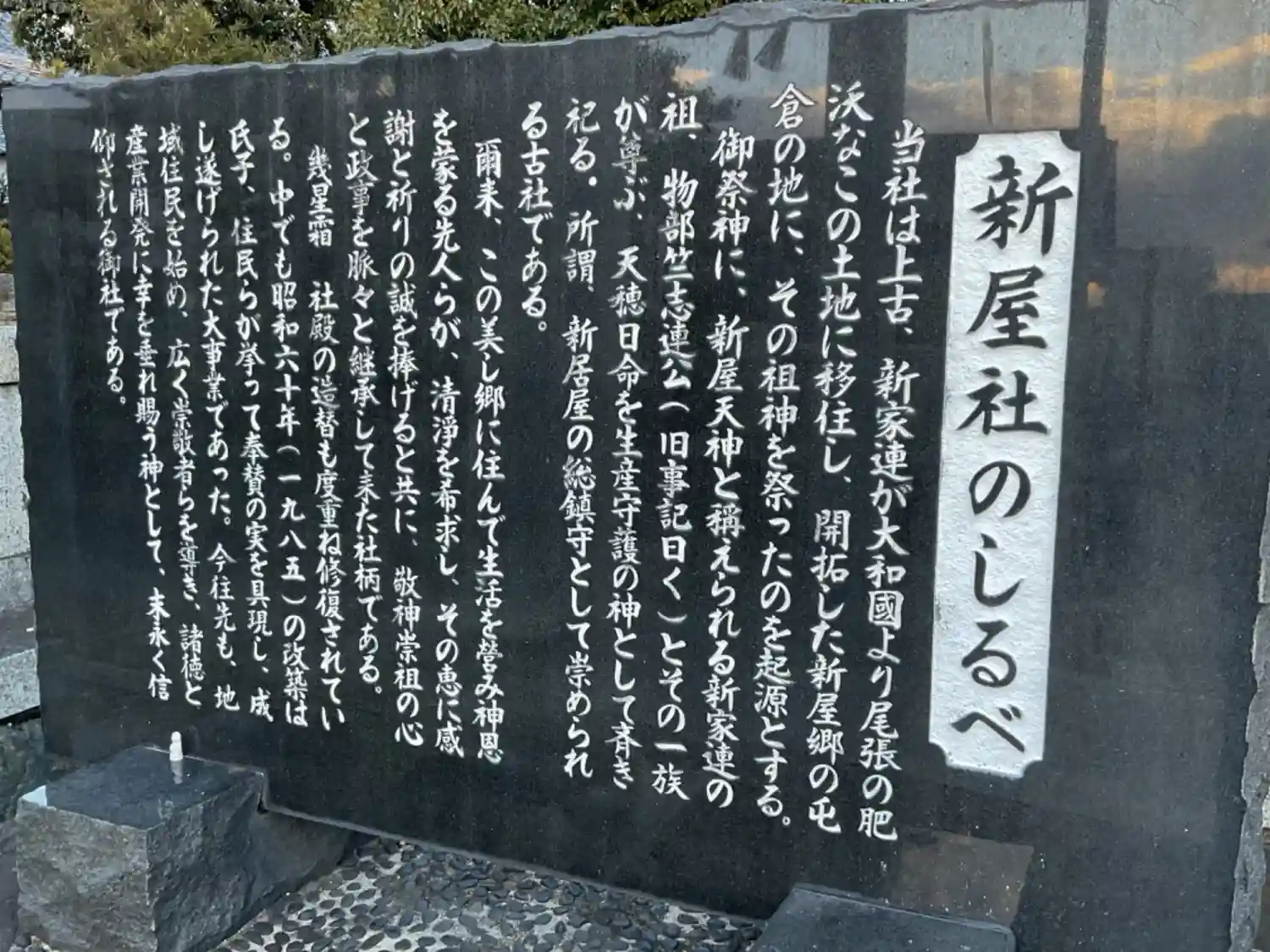 | ご由緒 | 南北朝時代の貞治本国帳に従三位新屋天神とある古社。