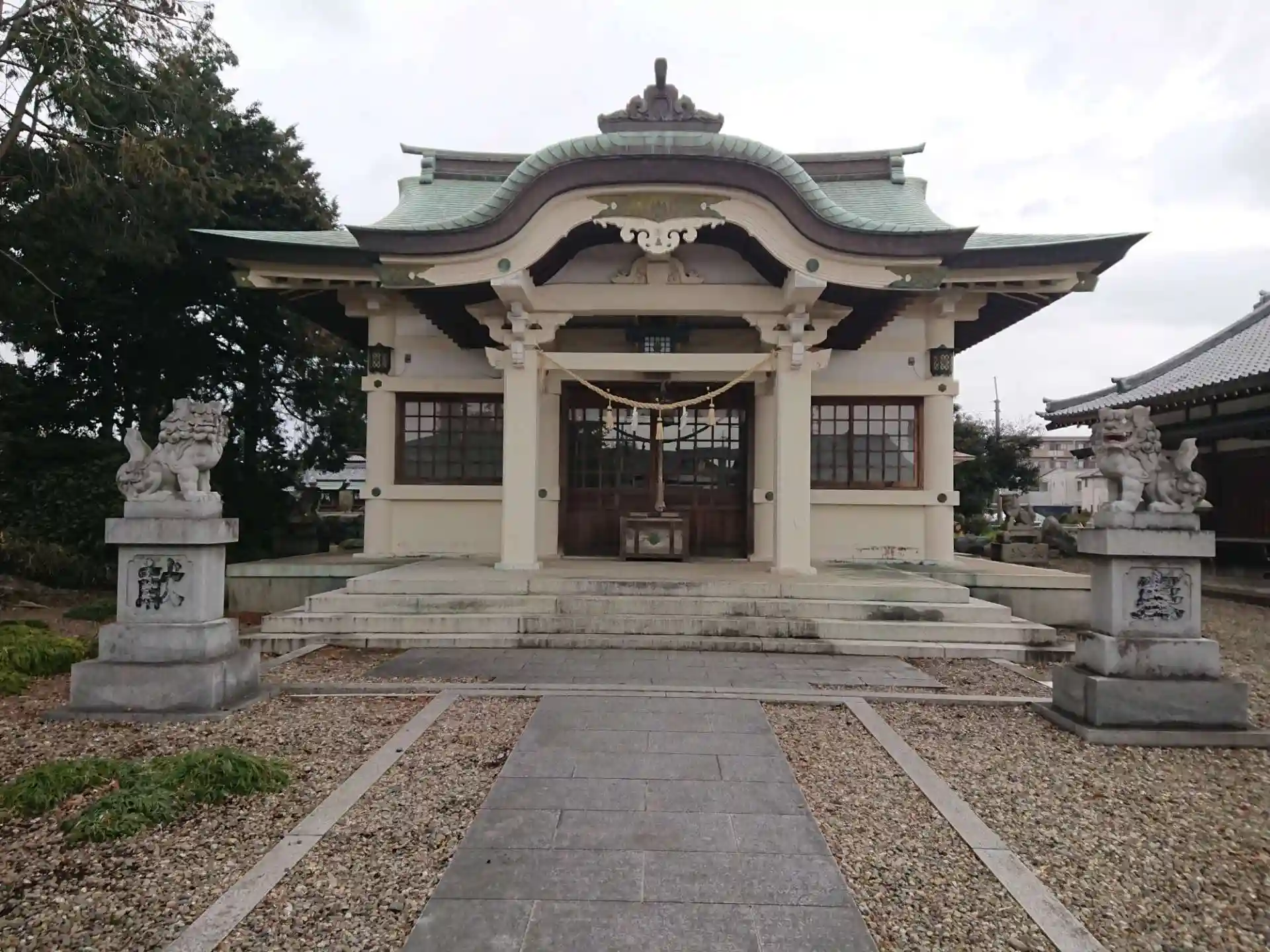クリーム色の綺麗な社殿がありました。