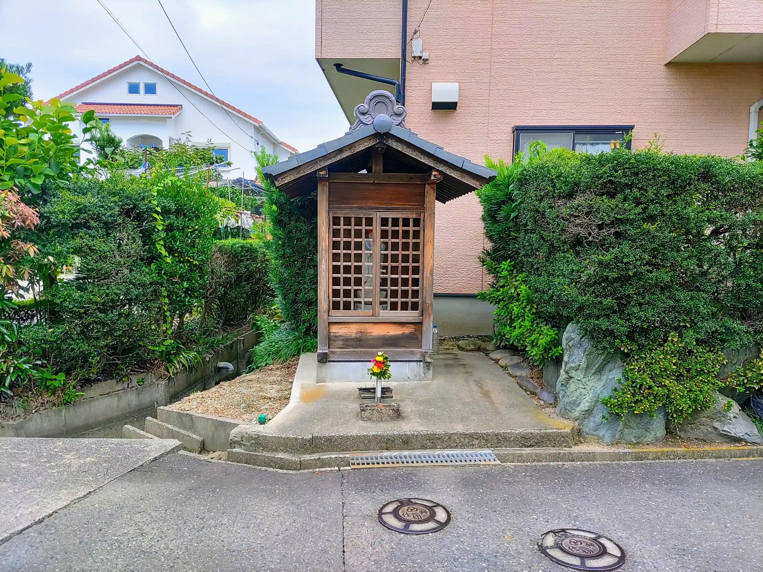 あま市の二ツ寺地区を東西に通っている道には地蔵堂が点々とある。こちらは一番東にあるお地蔵さん。