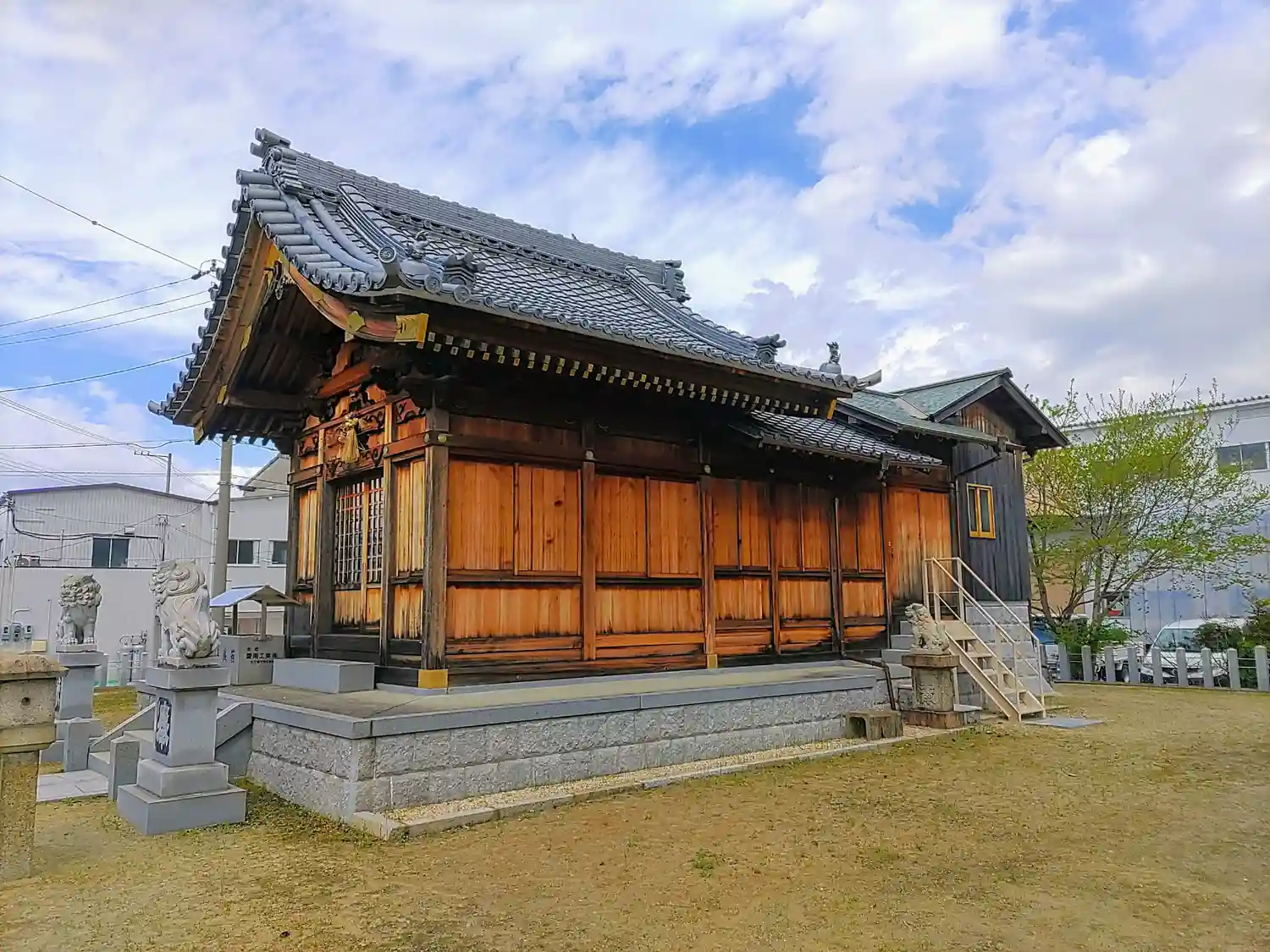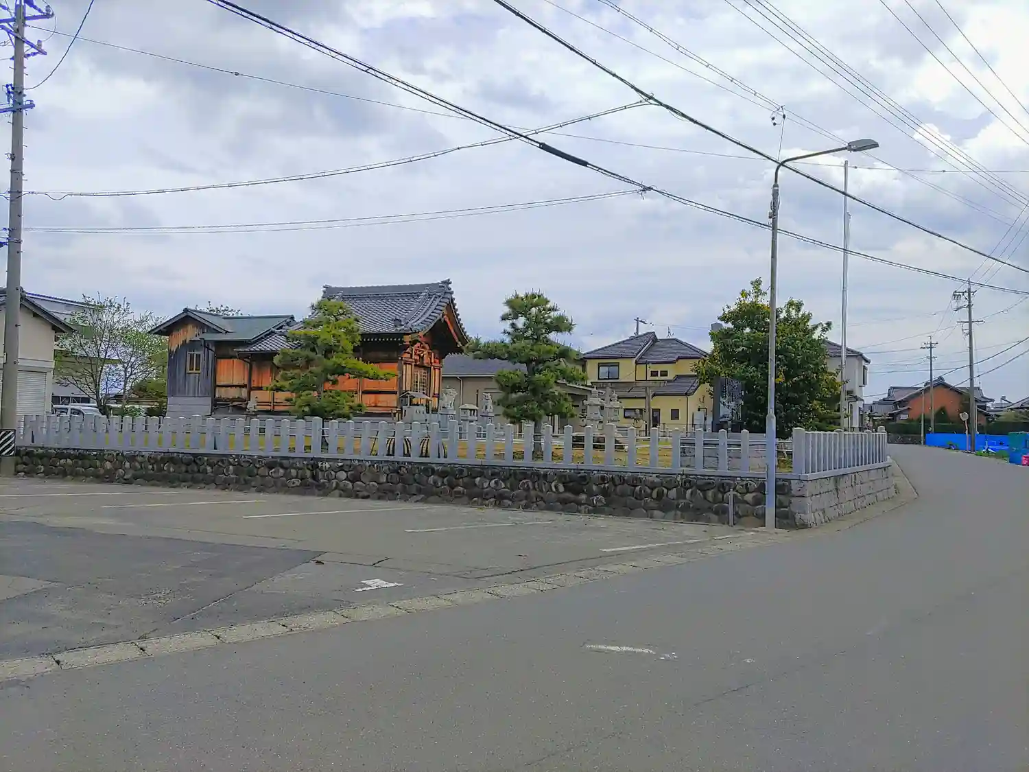周辺は開けて畑が多いところに、整備された境内にまだ木の色が残る社殿があります。