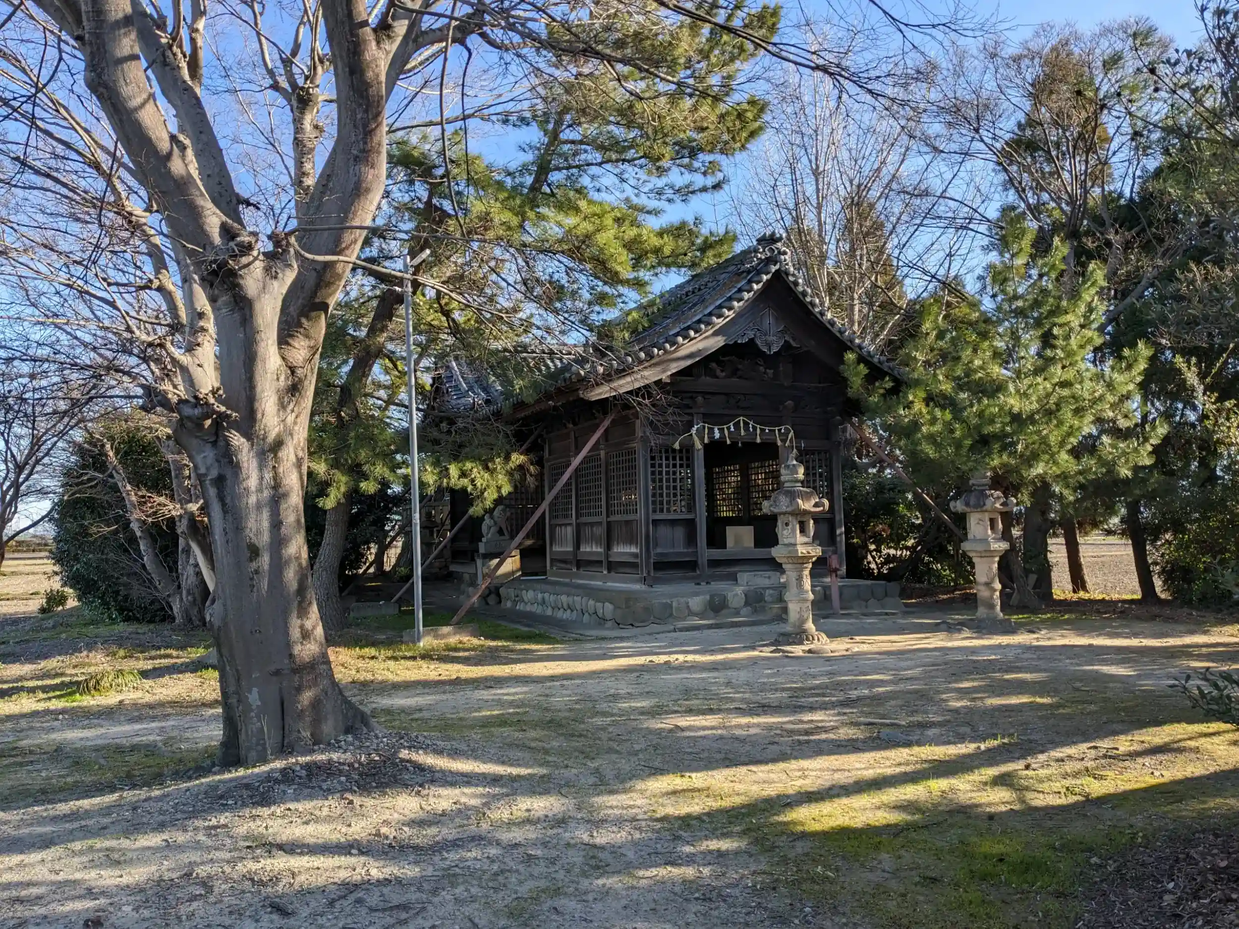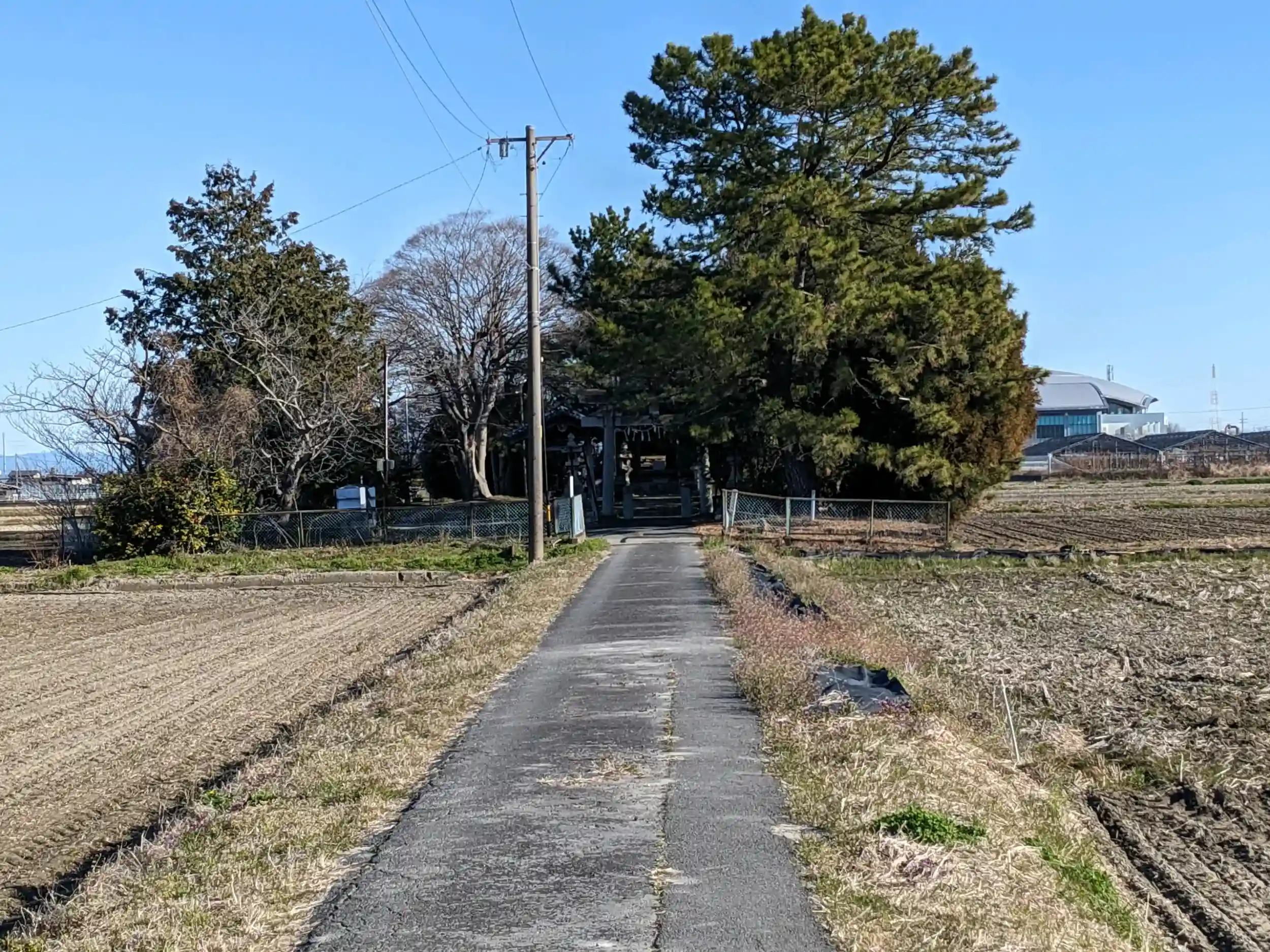 四方は田んぼに囲まれ社叢がよく見えます。