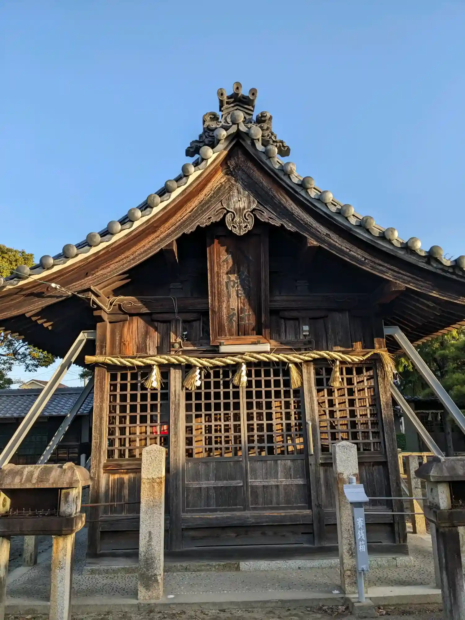 古いのだろう。拝殿は補強がされている。