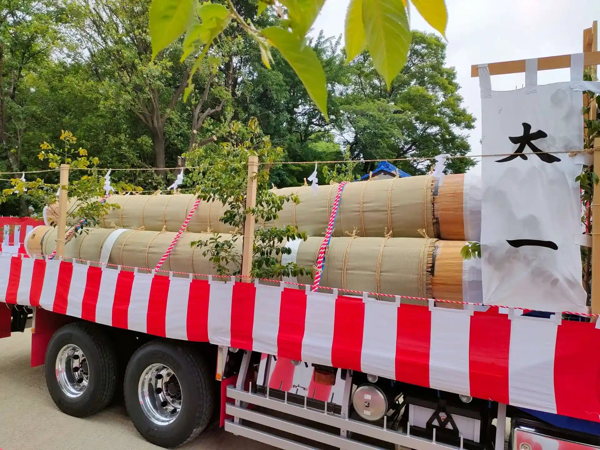 式年遷宮に向け、伐採した御神木を伊勢神宮に運ぶ、御神木奉迎送を見に地元の星大明社に行ってきました。