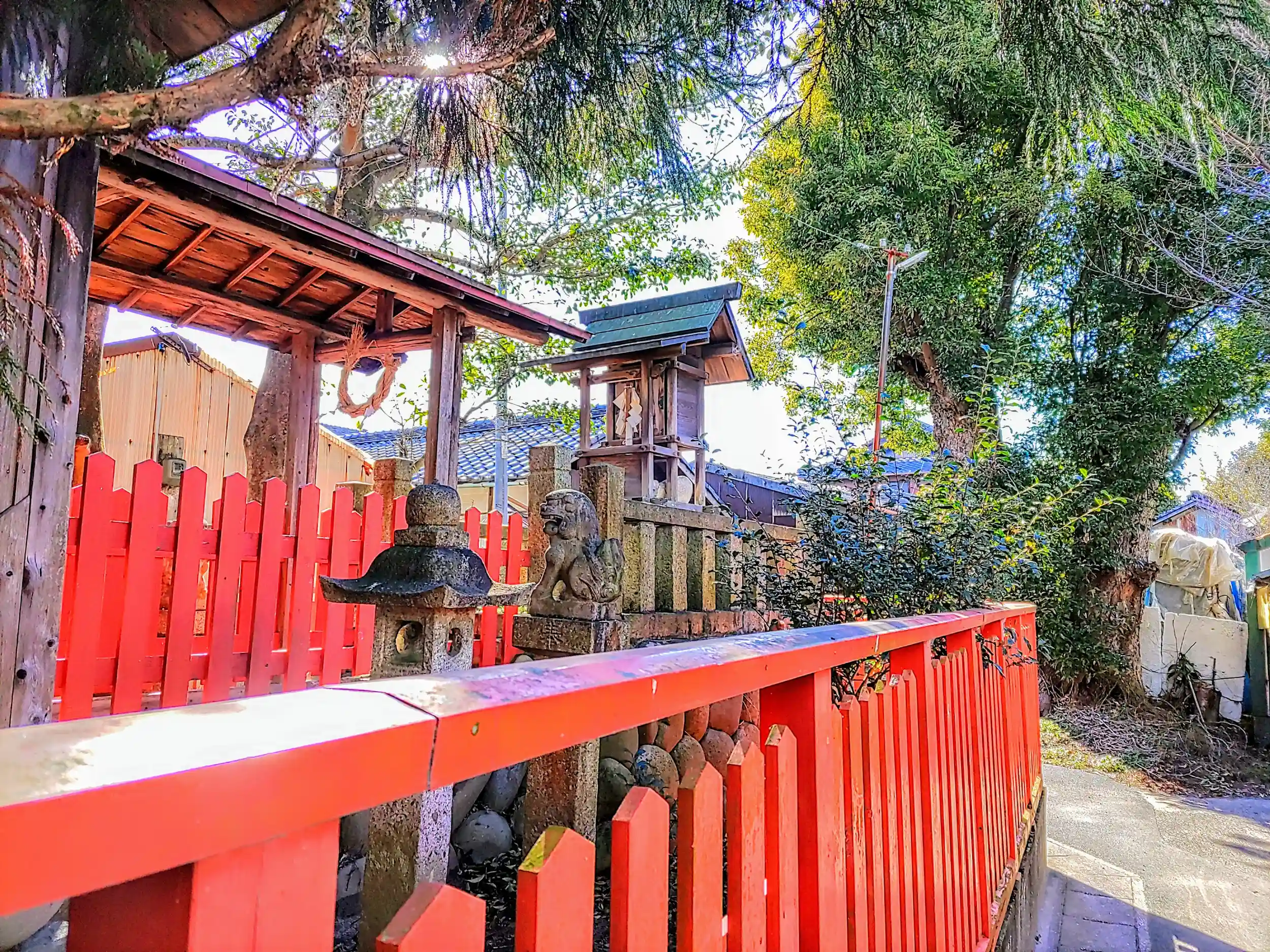 赤い柵が印象的。