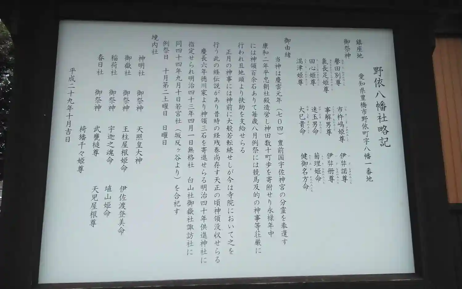| 通称 | 野依八幡社 |
