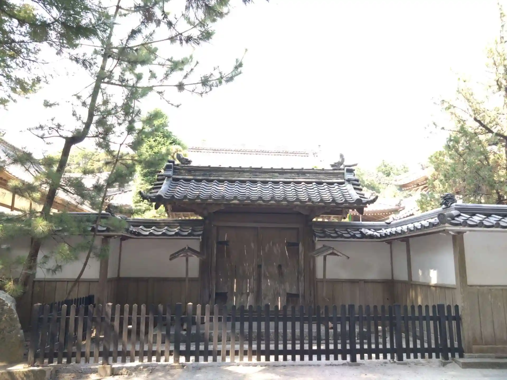参道の先の門は閉じていました。塀を右に行ったところに中に入れる門がありました。大きな門が見えますが、門が閉じていたので入りにくいです。