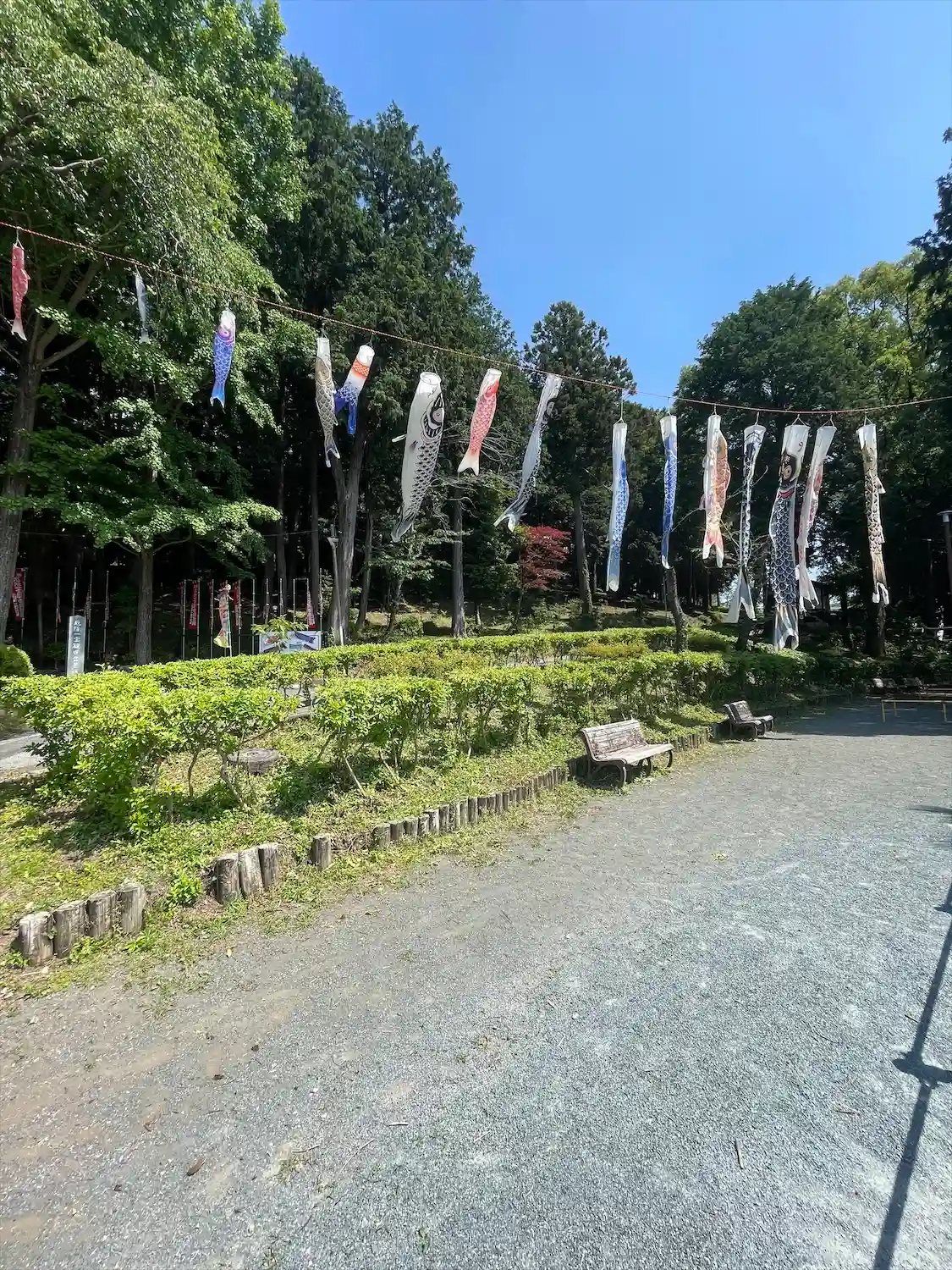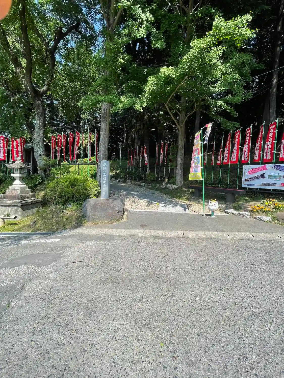 入り口に鯉のぼりが泳いでいる。