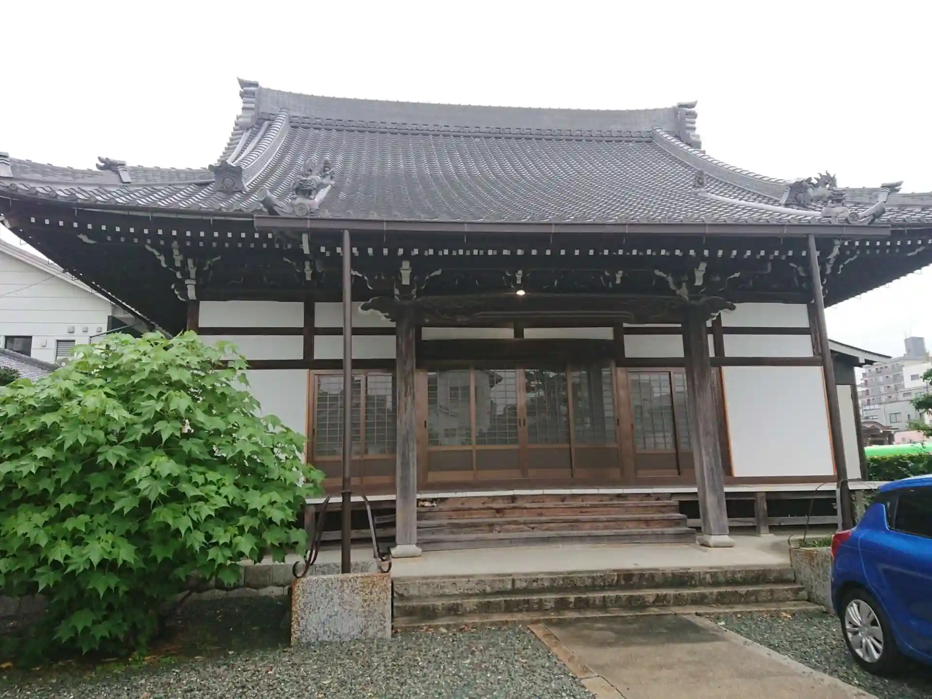 住宅地にあります。境内は狭いですが立派な本堂です。
