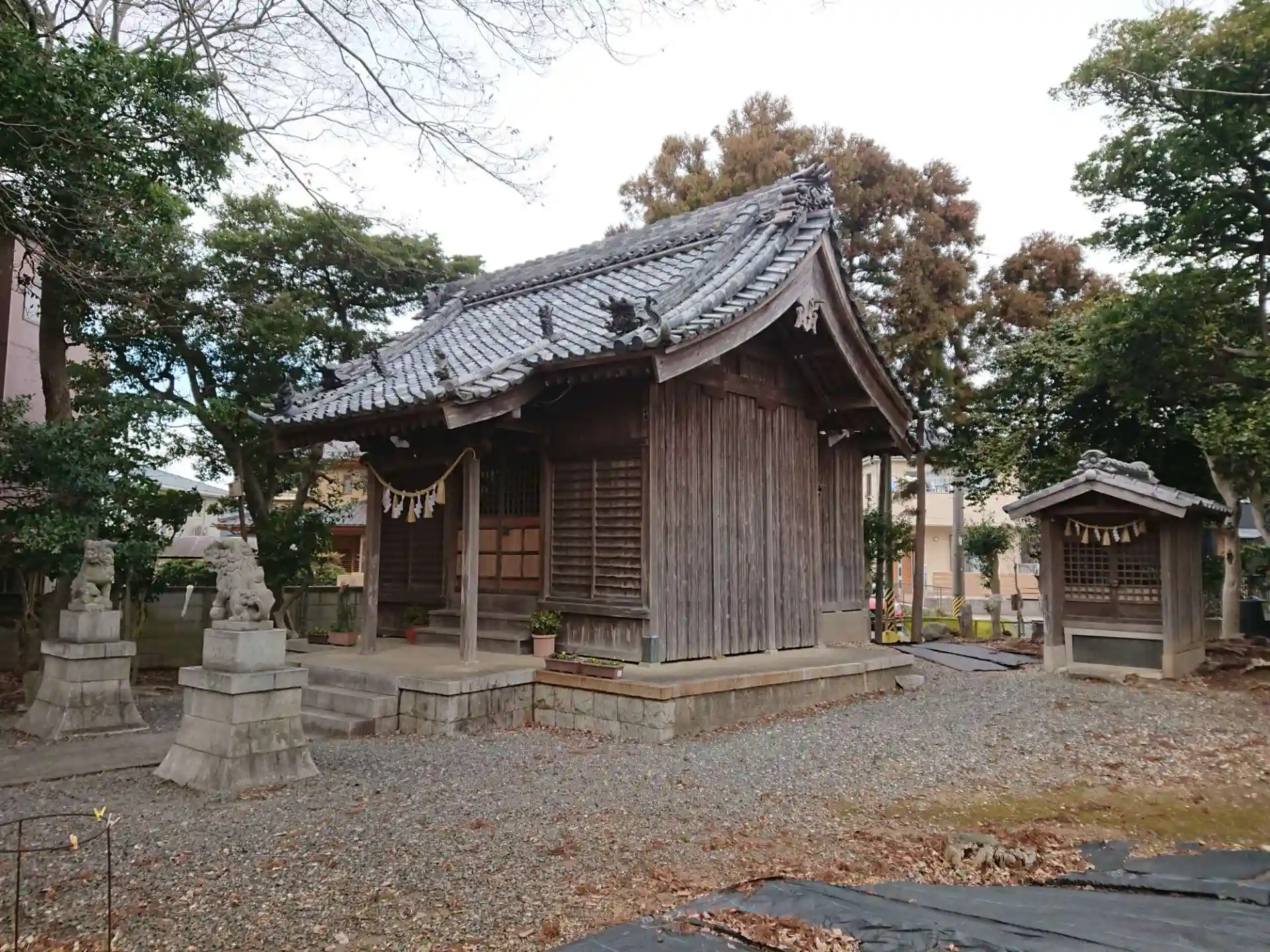 住宅地の中にあり、細長い境内に社殿があります。