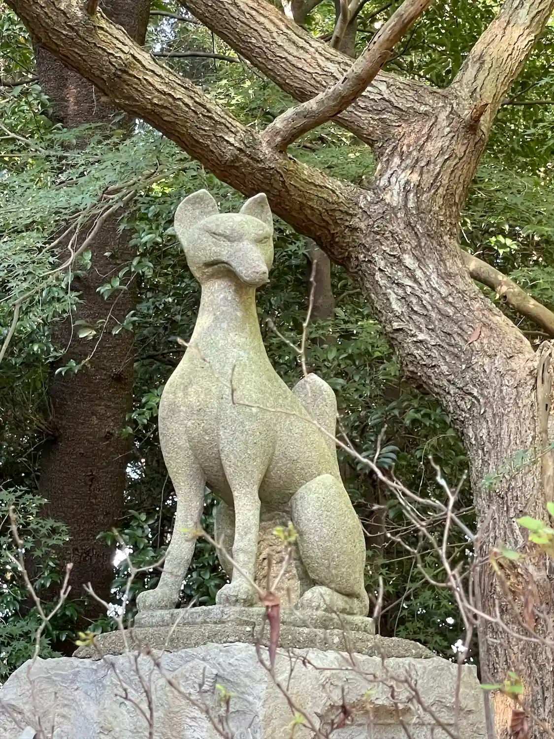 裏に狸と狐とシーサー?