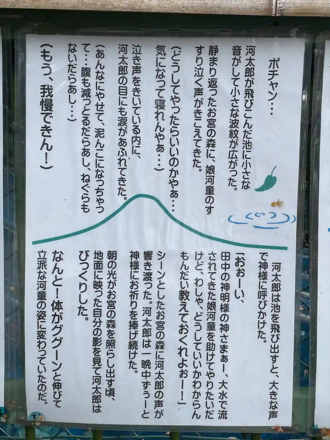 カッパのグッズが多いので、理由を尋ねると、カッパ伝説があって、紙が貼ってあると言う。