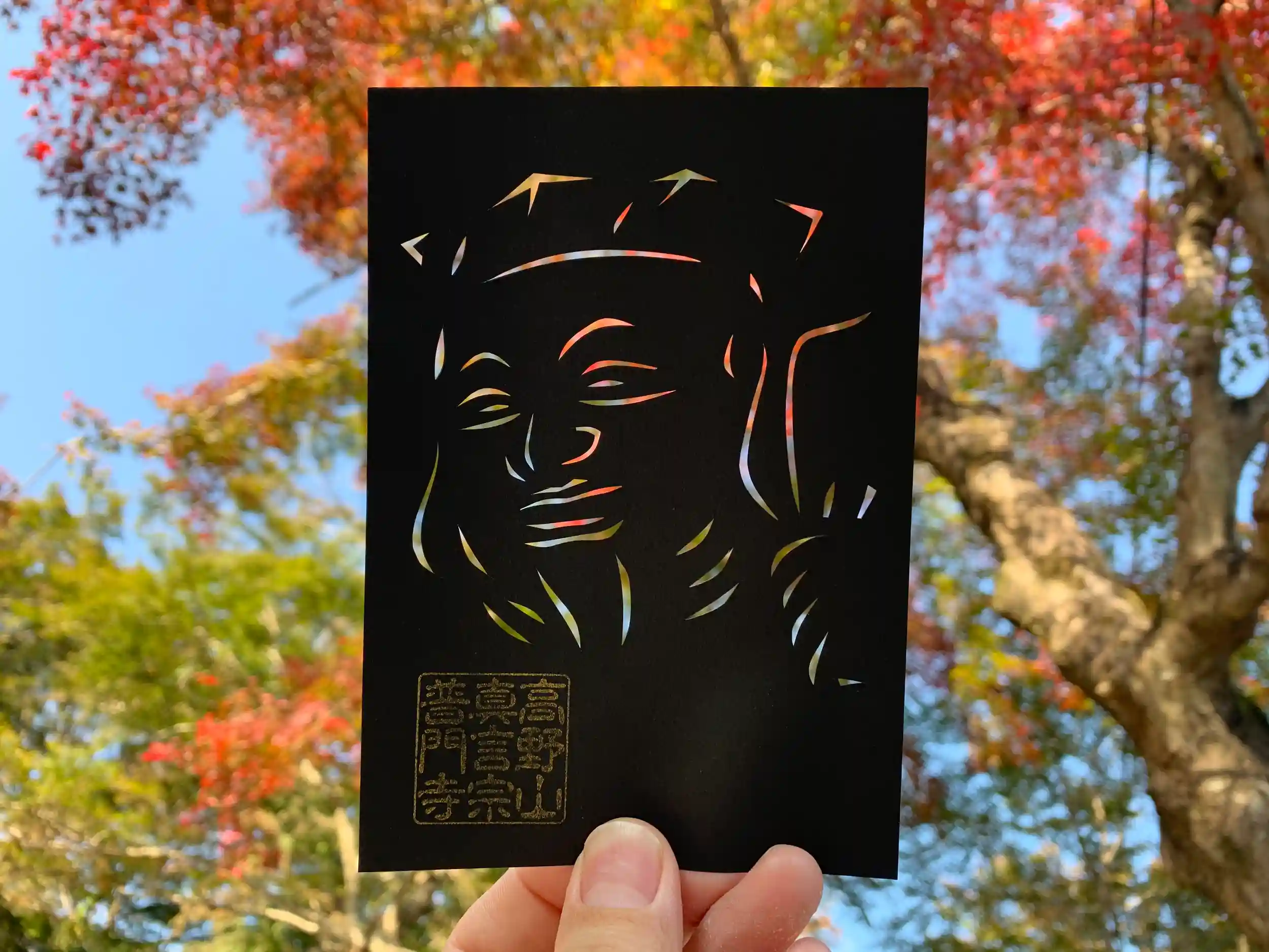 高野山の縁起物「宝来」を模して先代住職が仏様のお姿・梵字・文字を手切りしています。