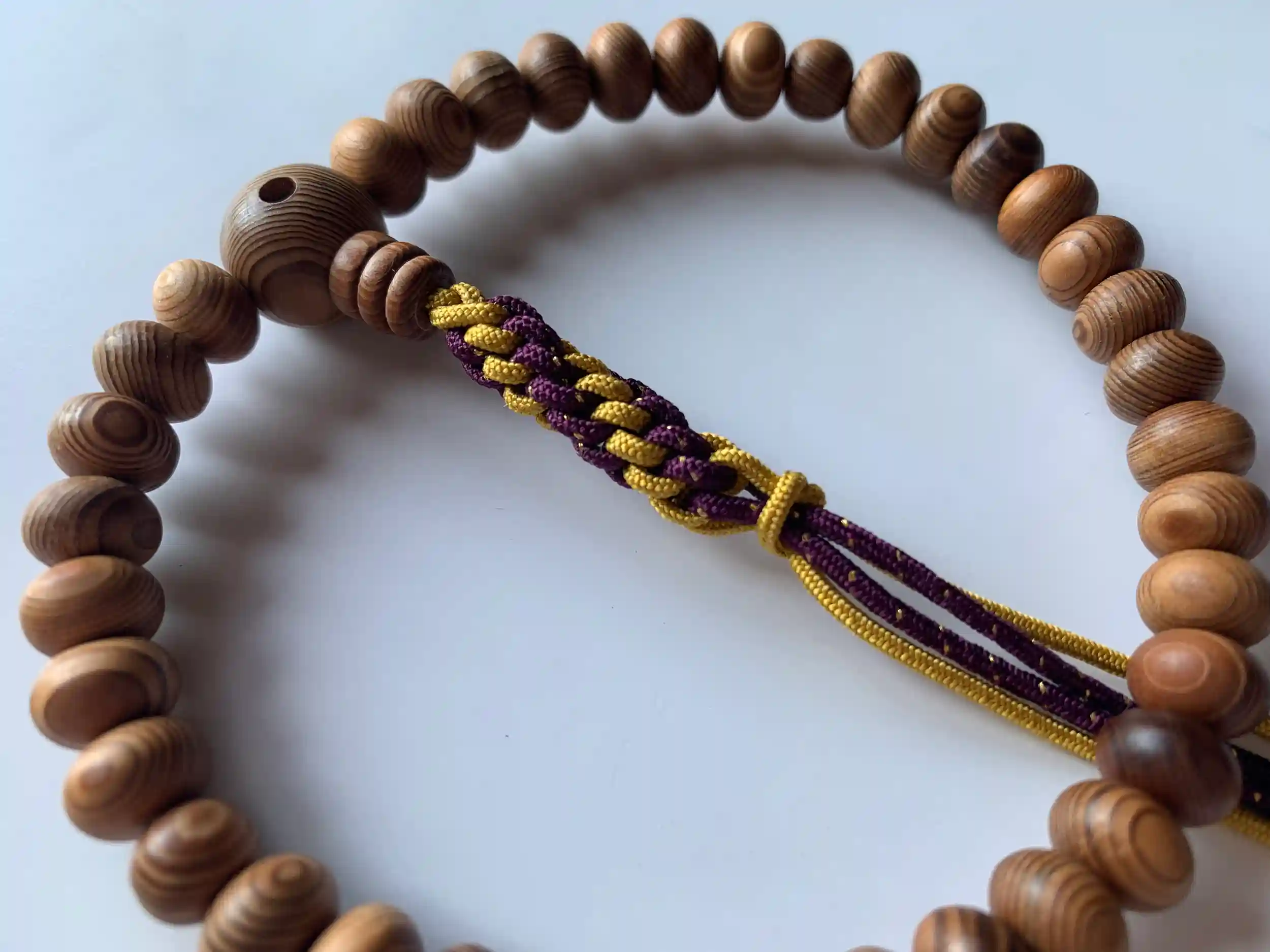 正絹の紐:先代住職がカラフルな正絹の紐を手編みしました。色の組み合わせ、編み方の違いにもご注目ください。