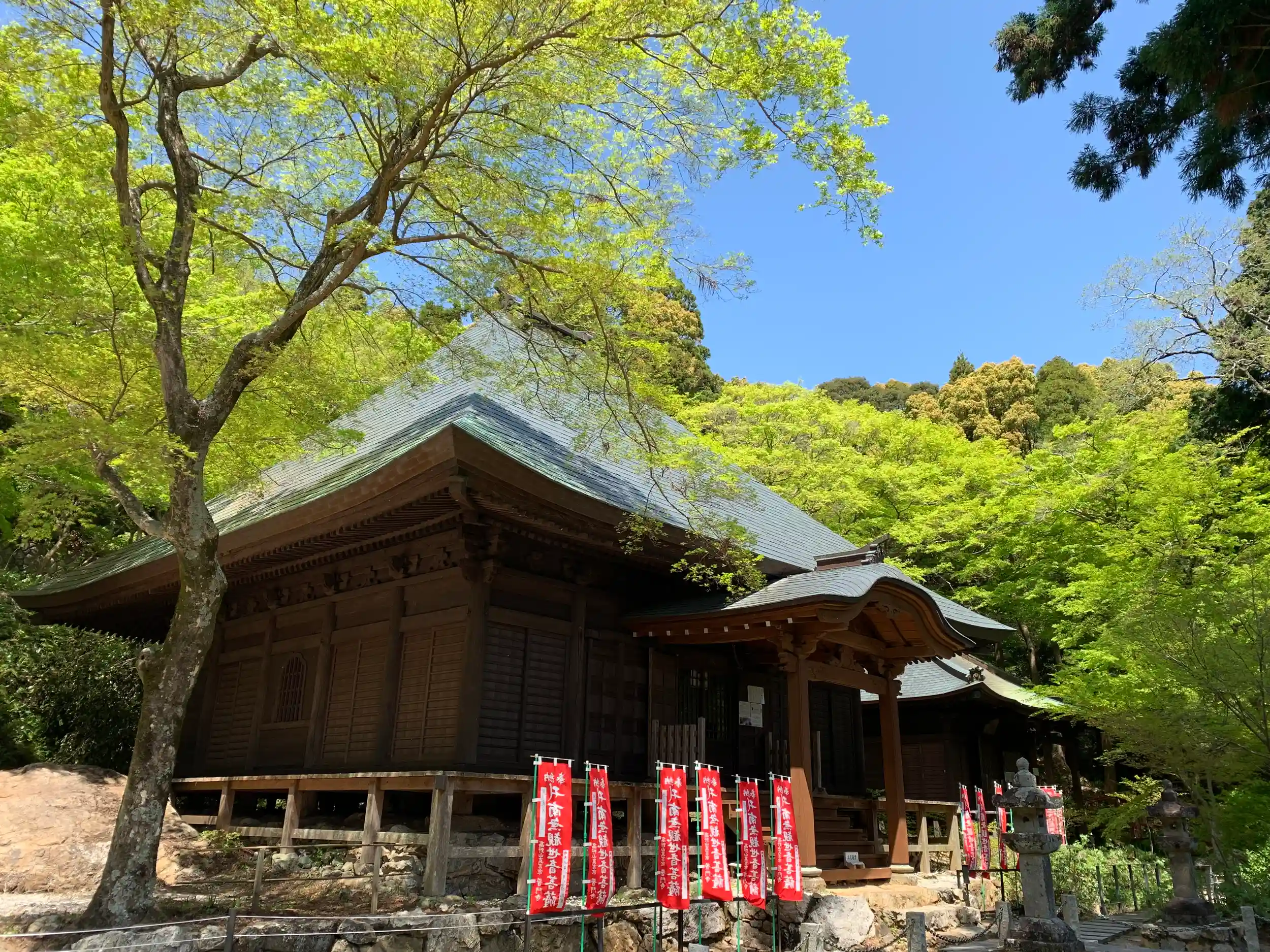山の清々しい風に吹かれ、生命力溢れる青もみじを愛でる時期を迎えていました。この一瞬を生きる自然の命、先人から受け継がれてきた神仏へ祈る心を開山から1300年の普門寺で感じてください。