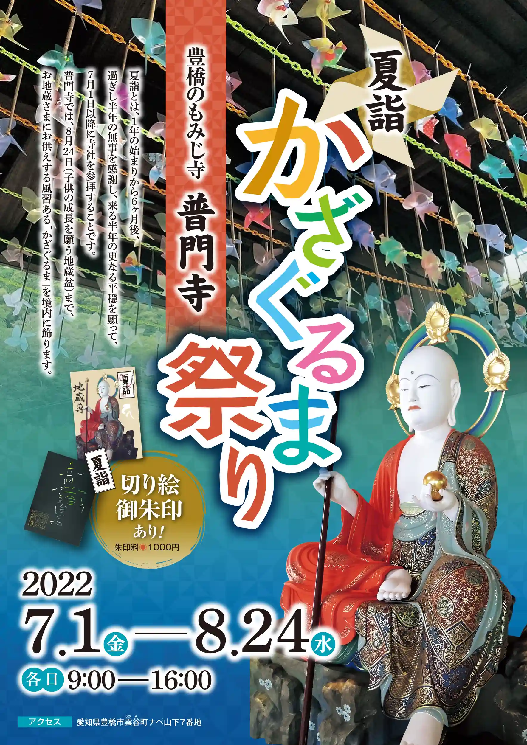 ②夏詣 公式ロゴ、江戸時代に造られた普門寺 地蔵菩薩像お姿入り