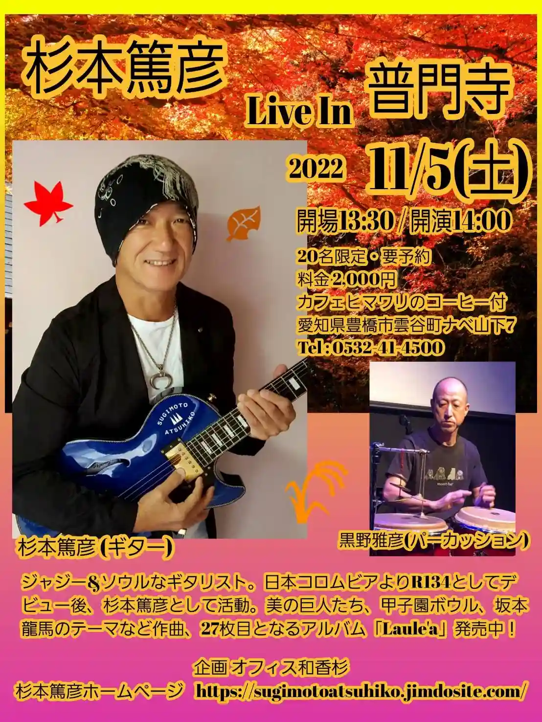 ギタリスト 杉本篤彦 @sugimoto_atsuhiko さんのジャジー&ソウルな演奏を豊橋のもみじ寺にて楽しんで頂けます!