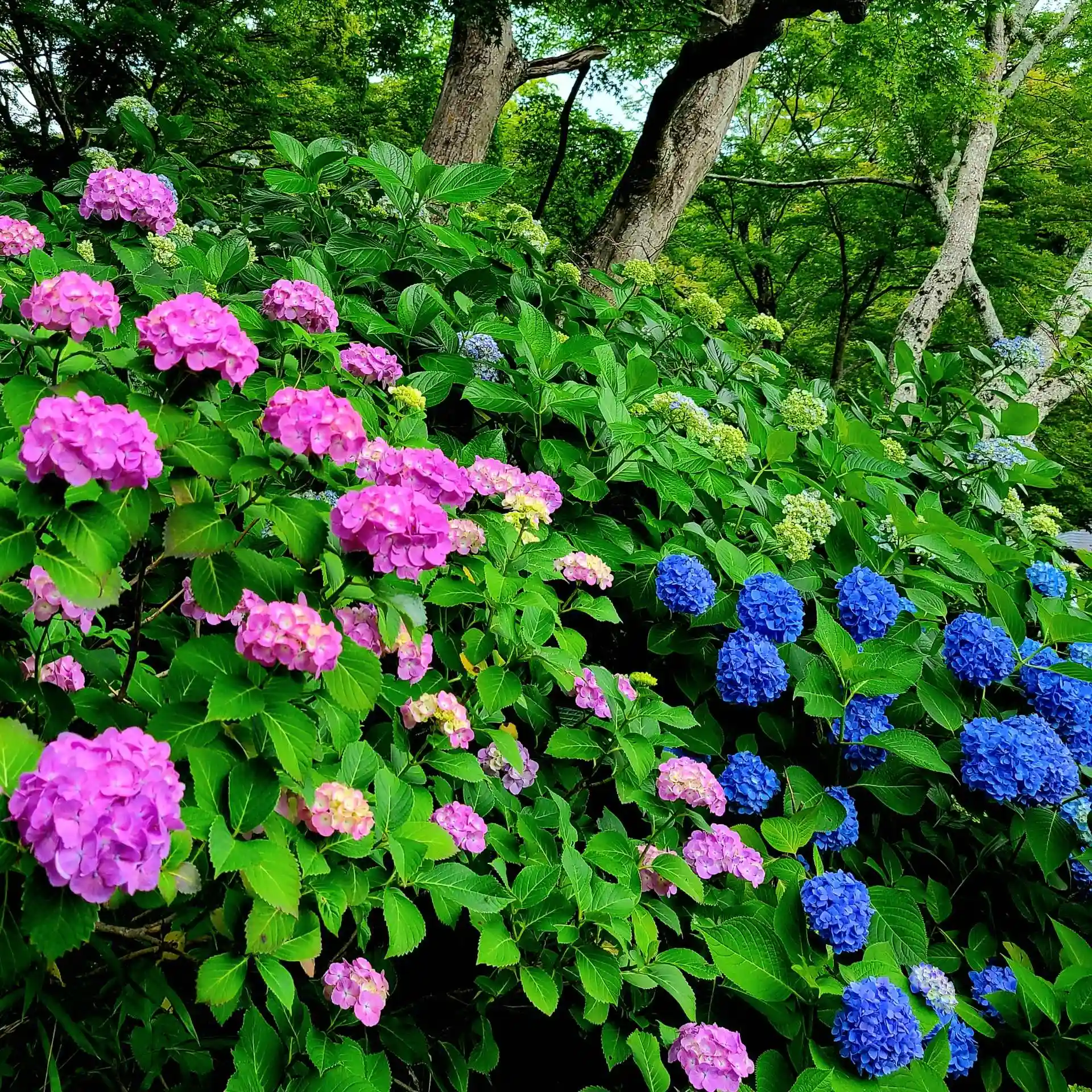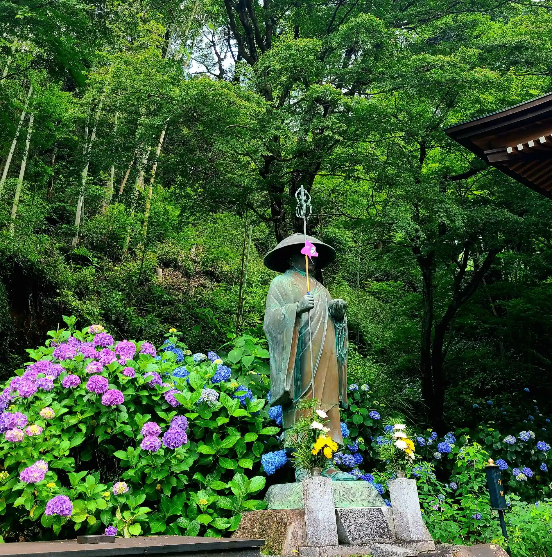 紫陽花と青もみじの共演や、風ぐるまの飾り付け今年新たな旧参道階段の「あじさい祈りの道」など、山内の至るところで趣向を凝らしたお取り組みがあり、四季折々に訪れたいお寺さんの一つとなっています。