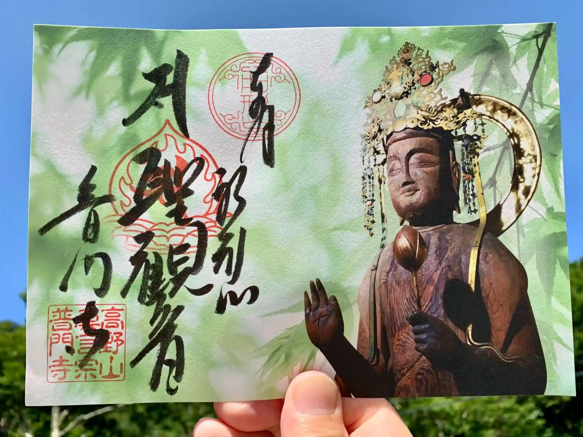 本尊 厄除け観音さまのお姿と手書き御朱印です。