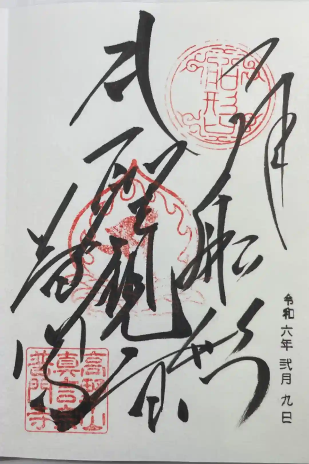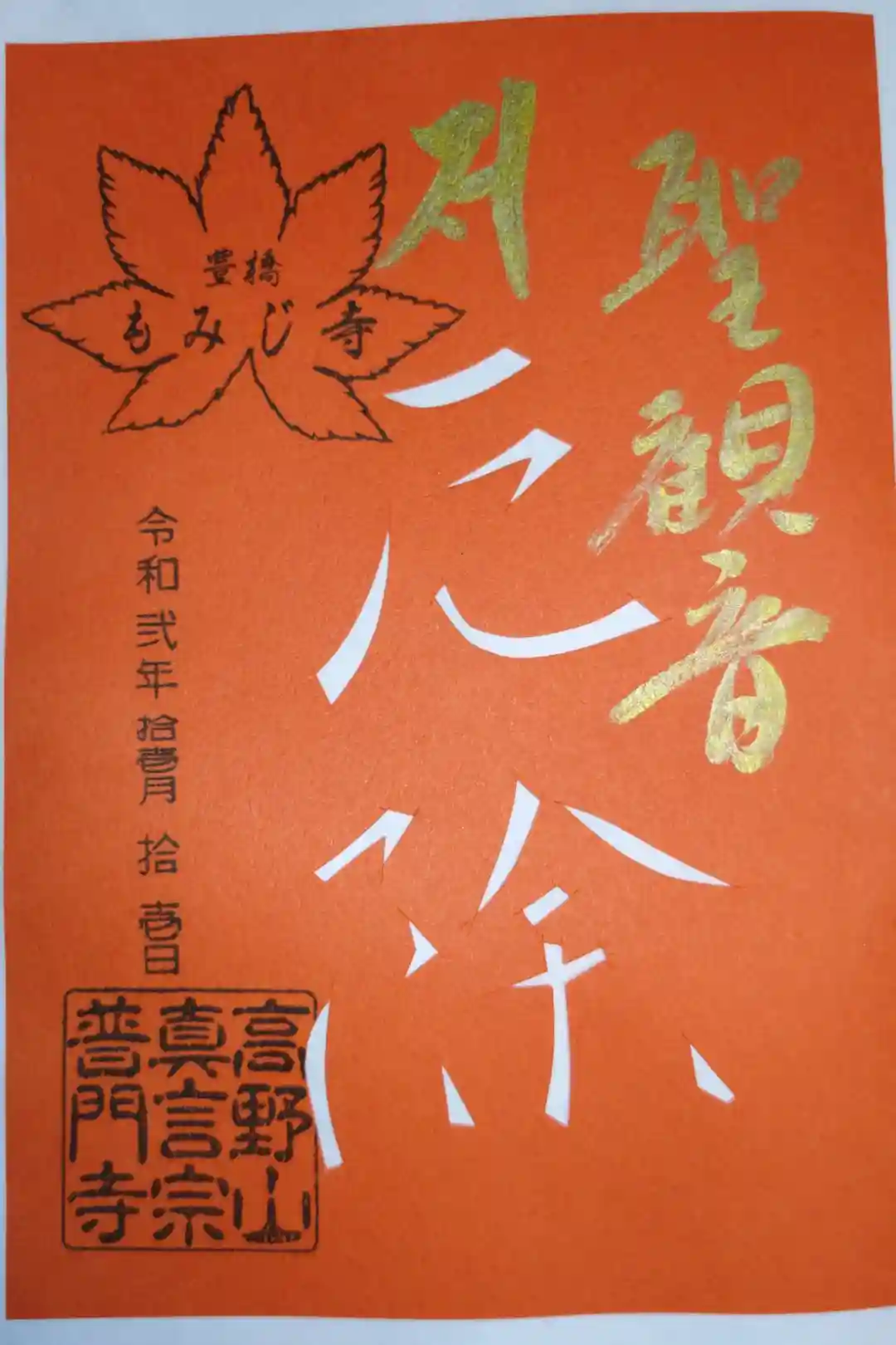 切り絵御朱印。厄除。金文字の聖観音。豊橋もみじ寺。