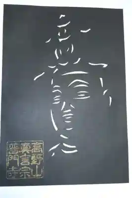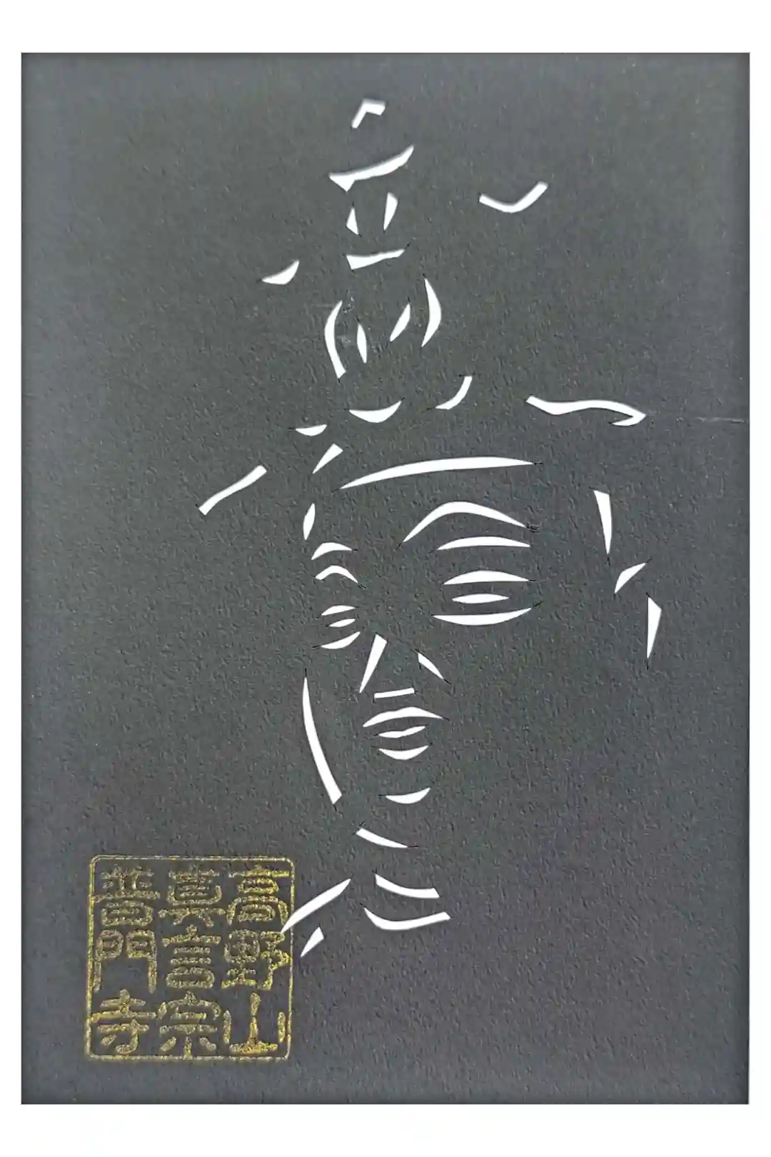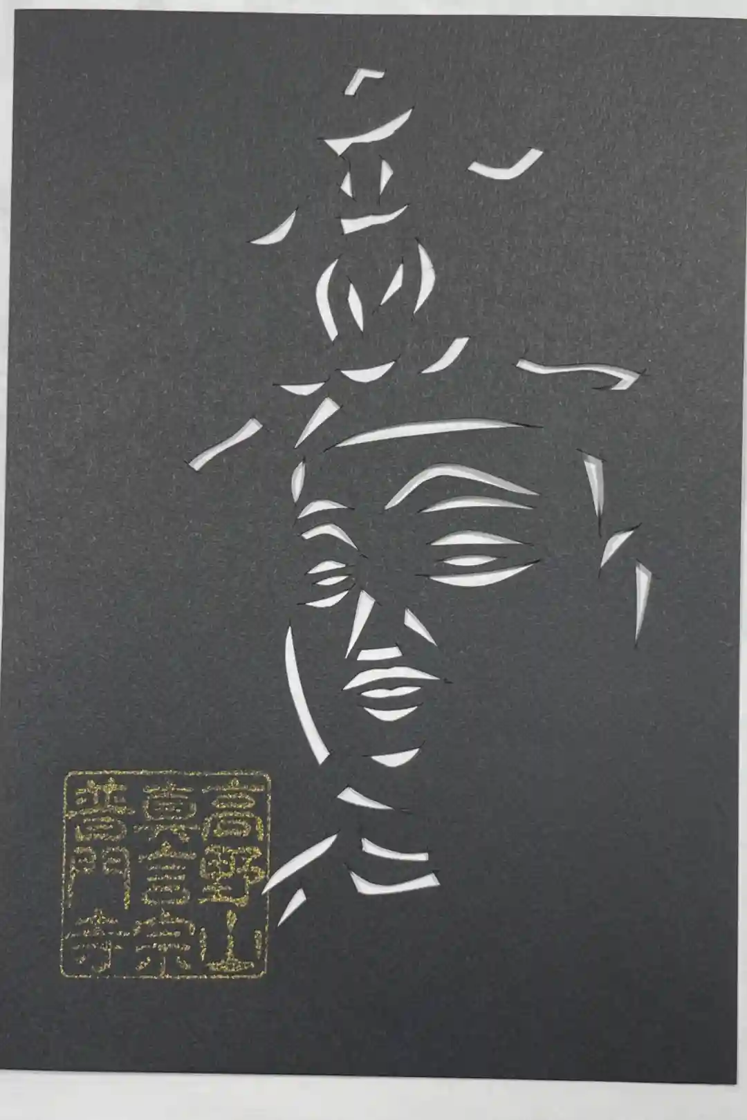 切り絵御朱印。不動明王像。元住職様手ずからの切り絵はシンプルで力強く、カメラが顔認識しました。