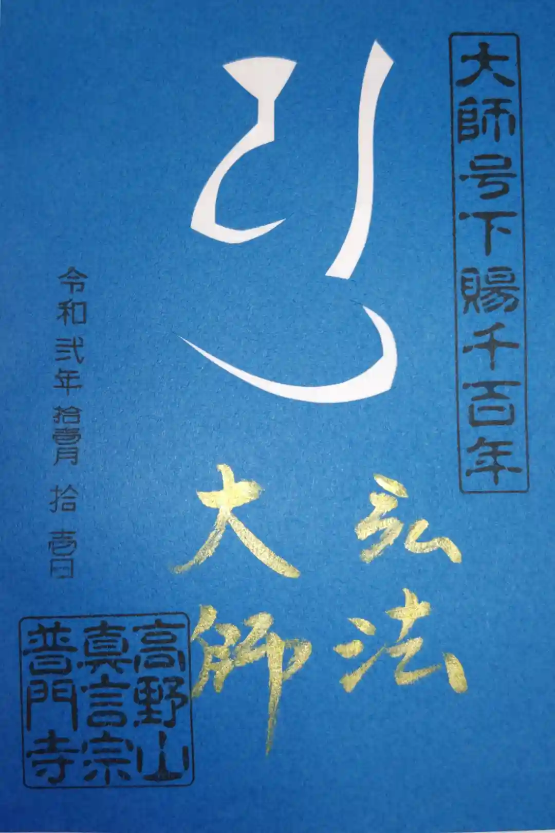 切り絵御朱印梵字。金文字で弘法大師。大師号下賜千百年。