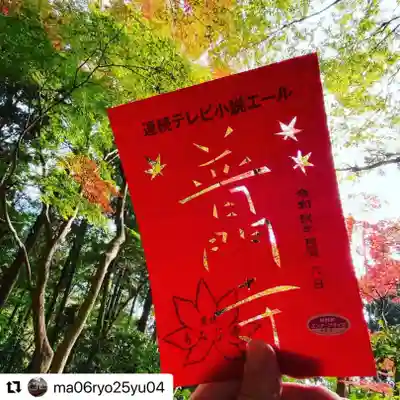 切り絵御朱印 NHK朝ドラ「エール」記念特別御朱印。切り絵の下の色紙は、水色です。