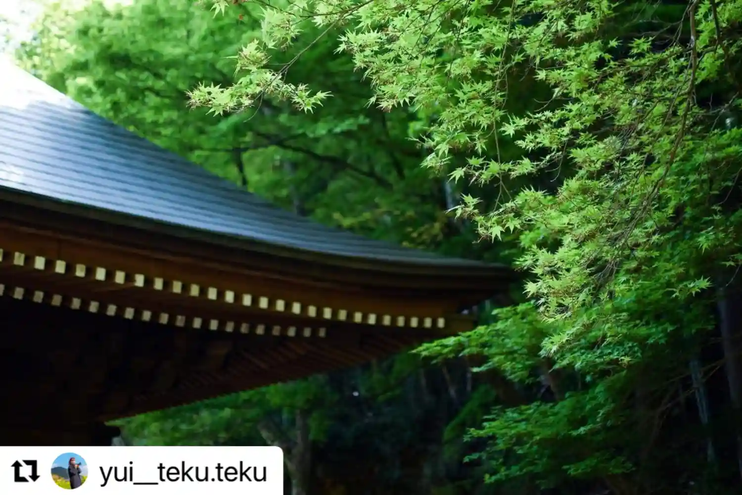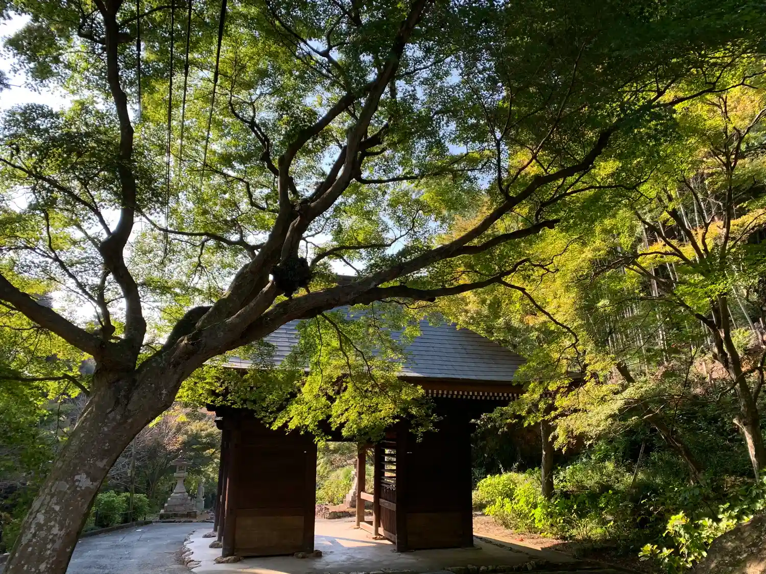 【仁王門裏 名残もみじ】青もみじ
