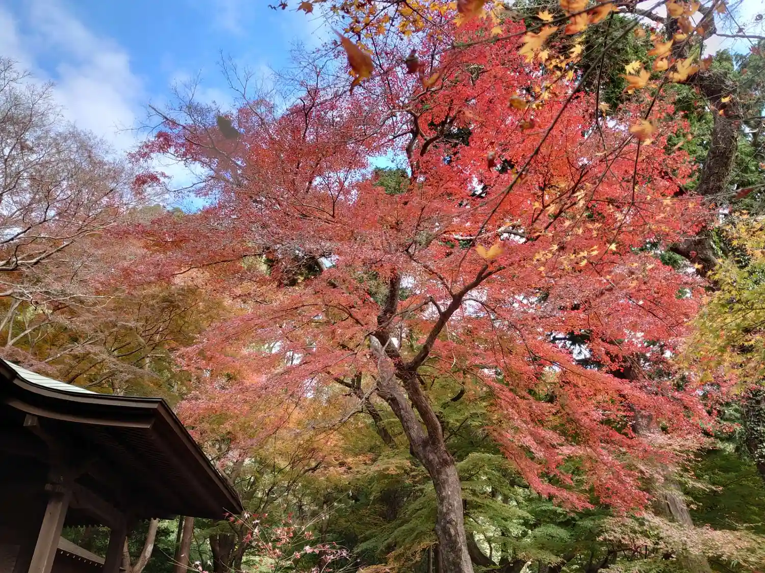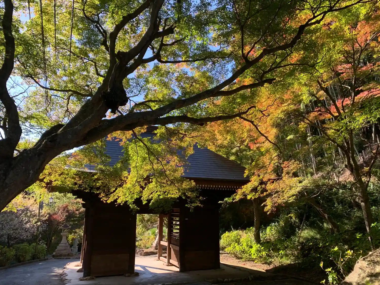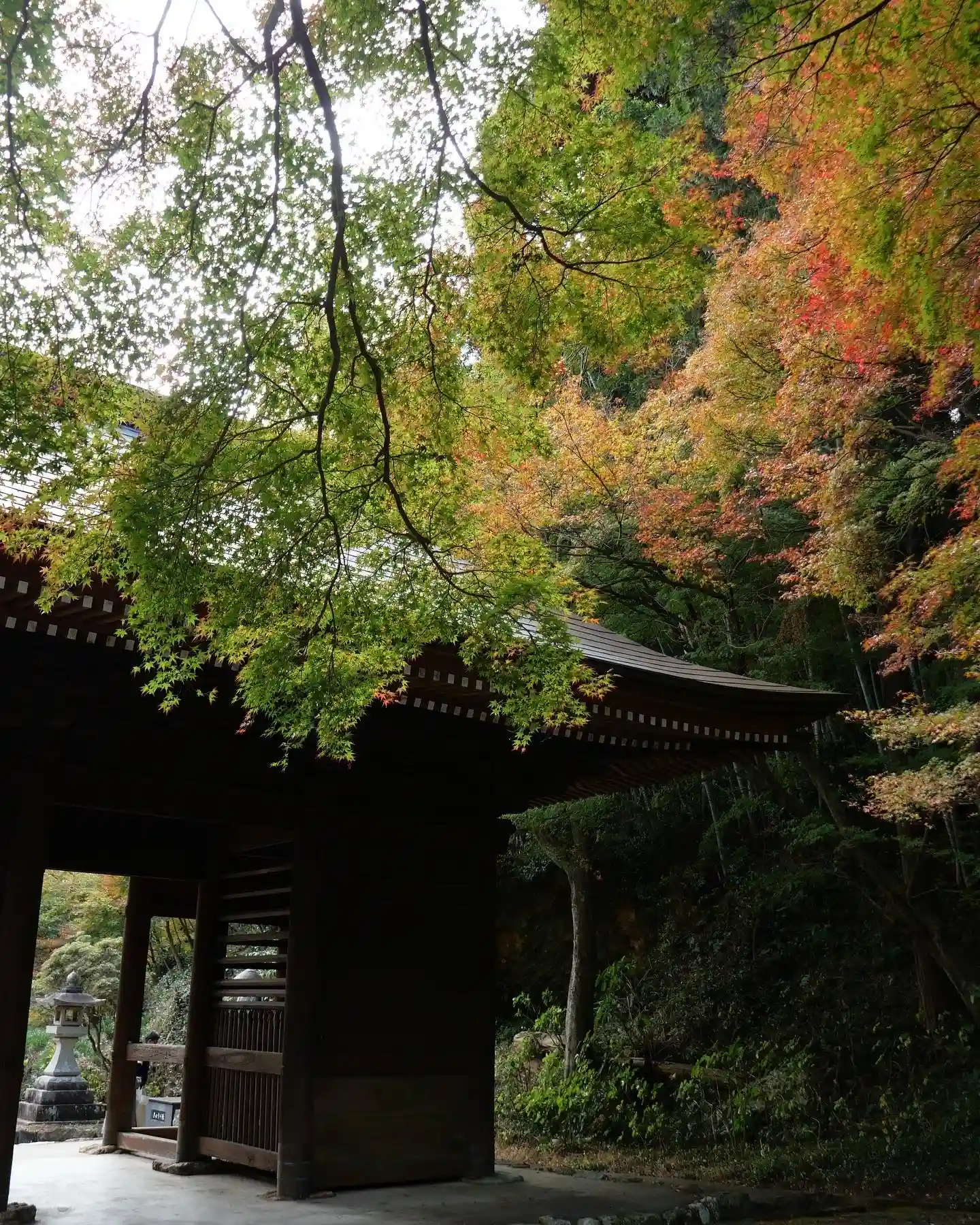 🍁仁王門裏 名残もみじ:色付き始め