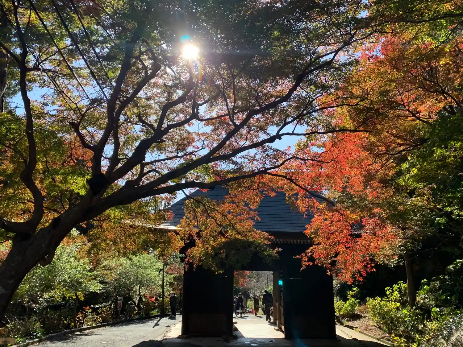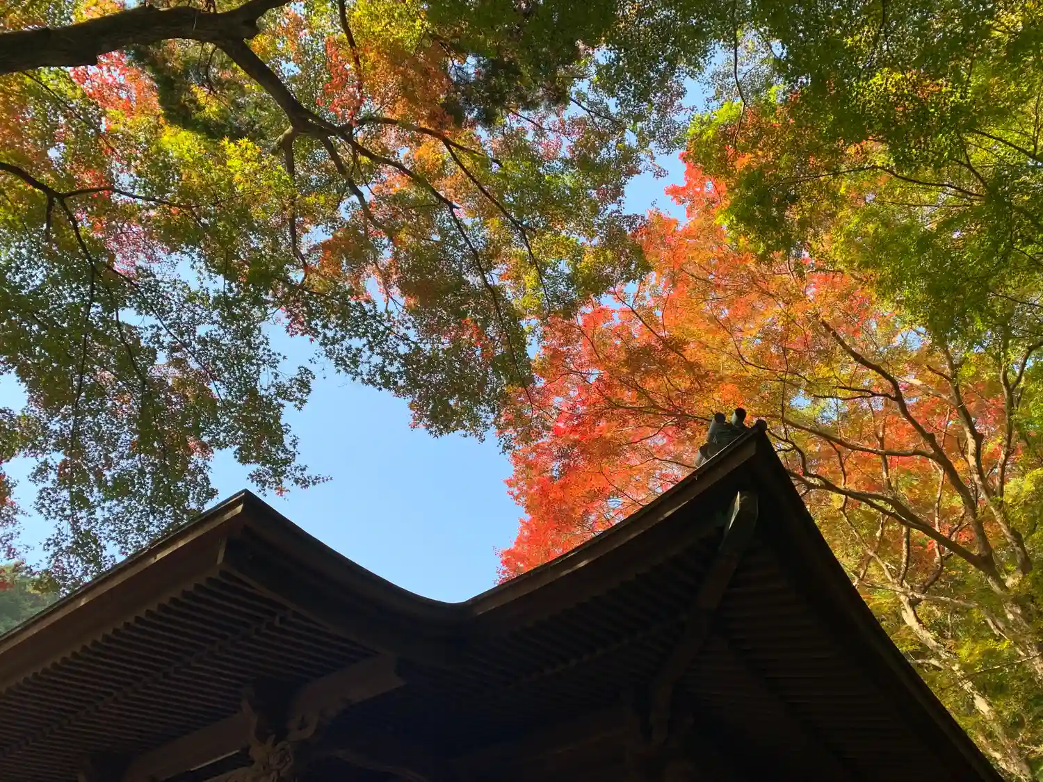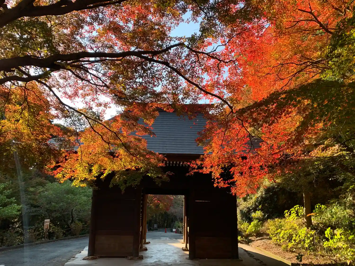 🍁仁王門裏 名残もみじ:色付き始め