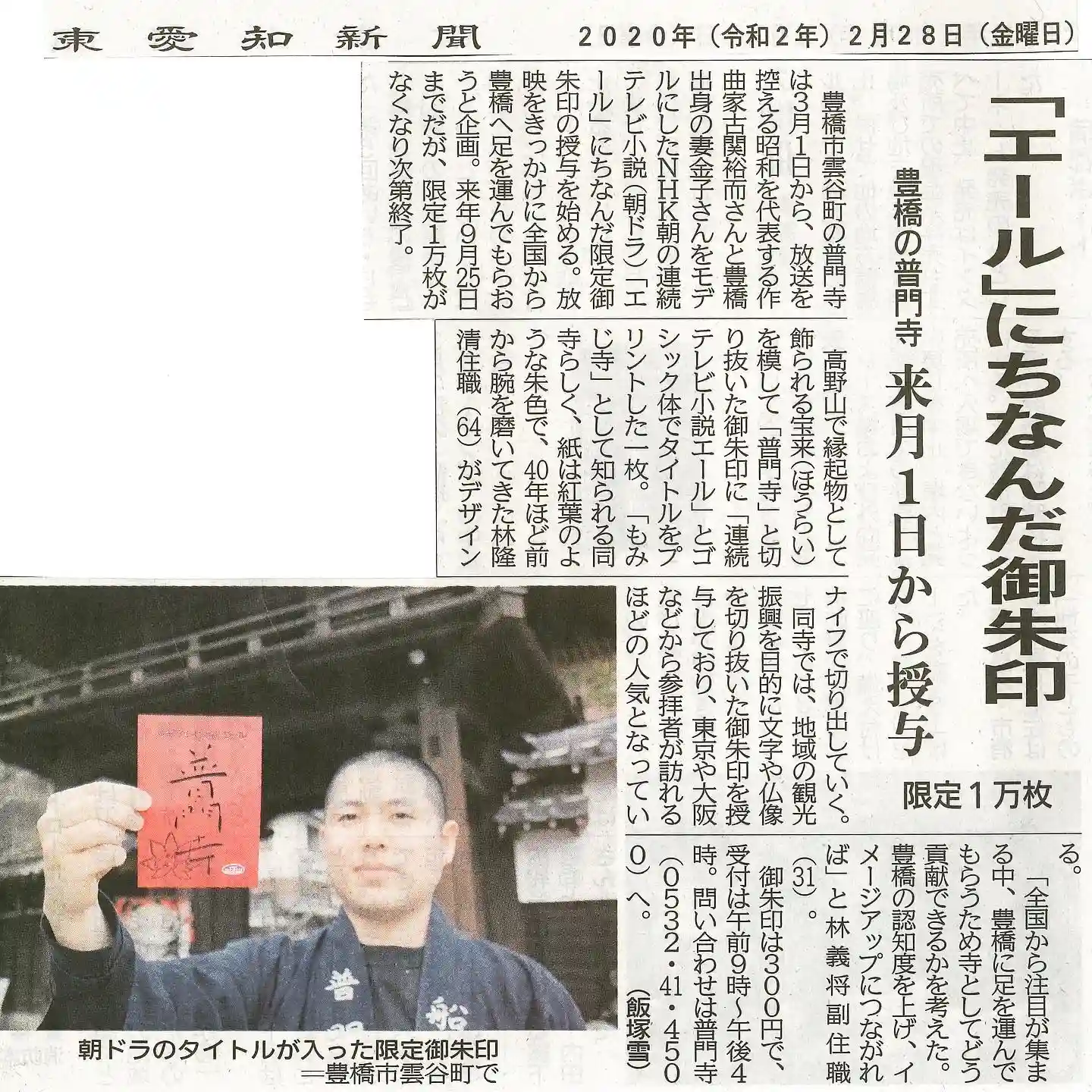 東愛知新聞にて限定御朱印が紹介されました!