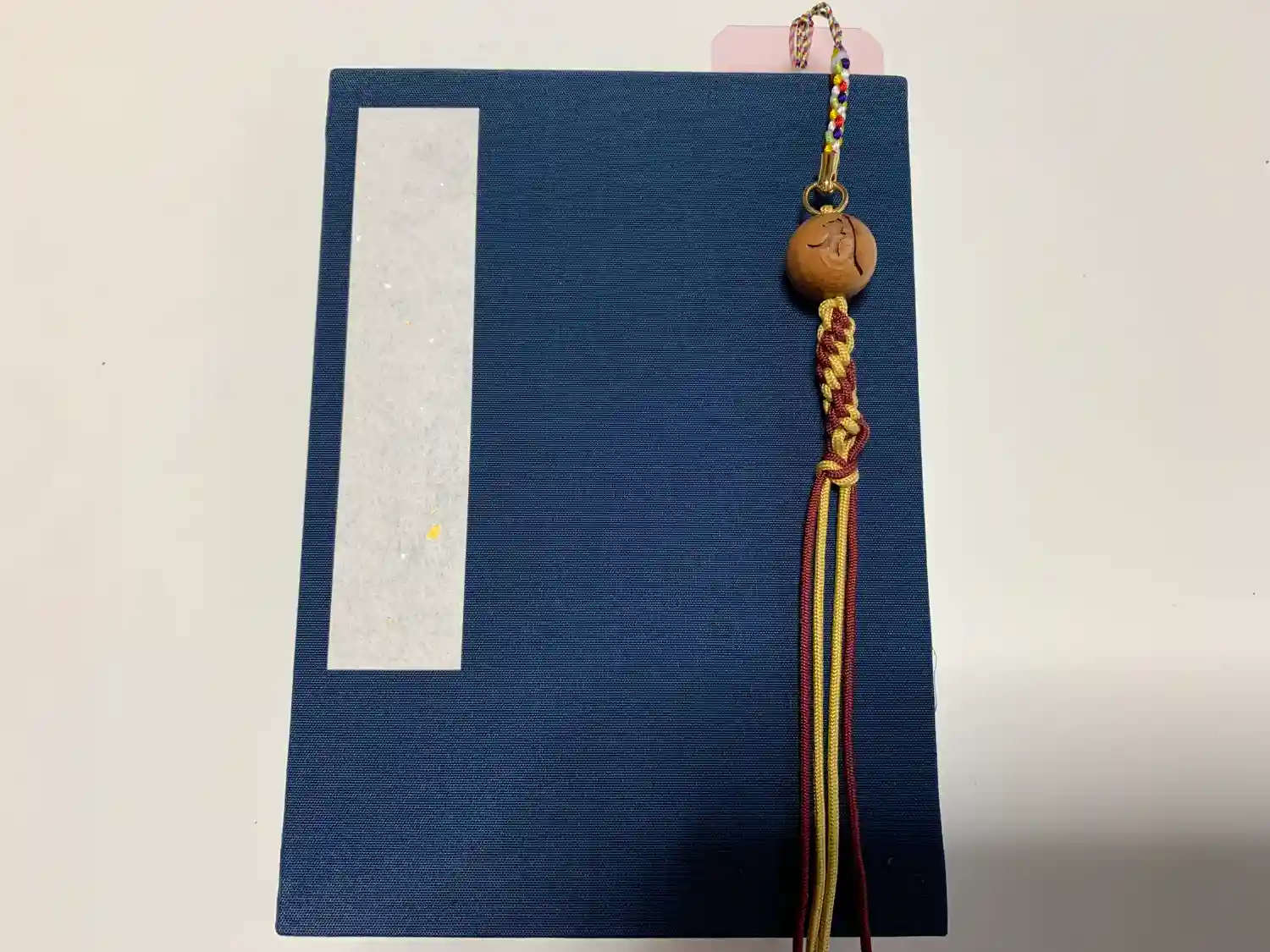 先代住職が念珠玉をゴム紐で束ね、御守りとして干支…