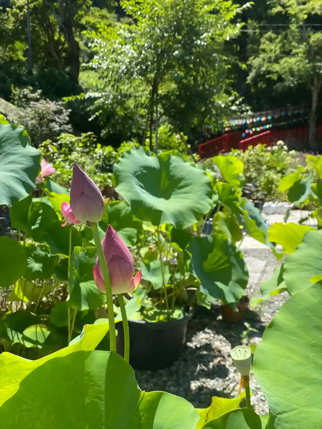 本年は、補陀落橋に(本堂に至る朱色の橋)先代住職・住職手作り棚を設置して風ぐるまを飾ります!