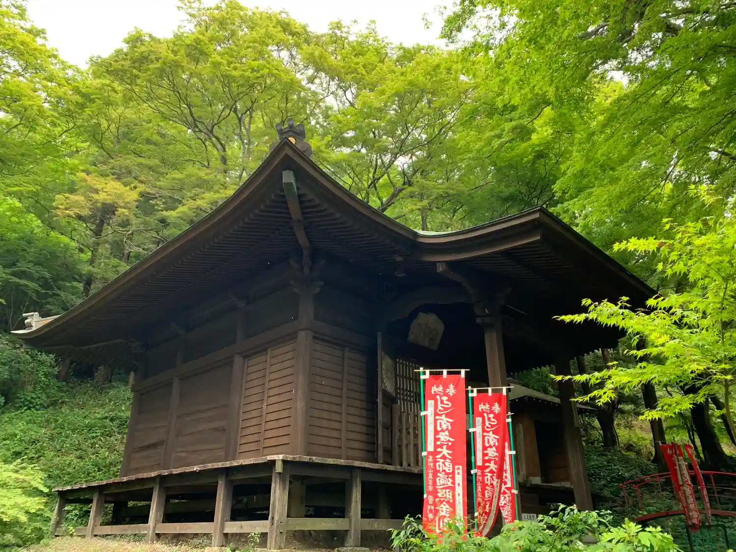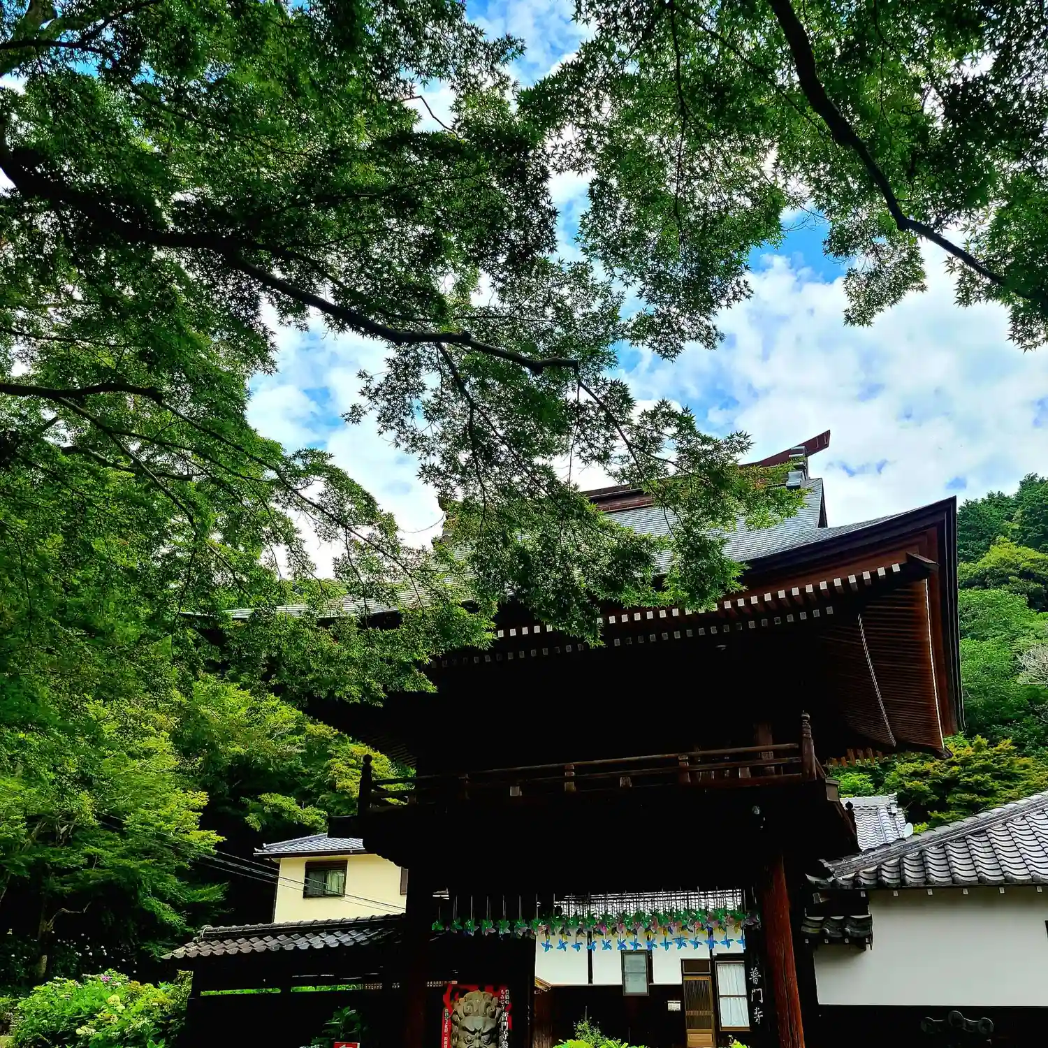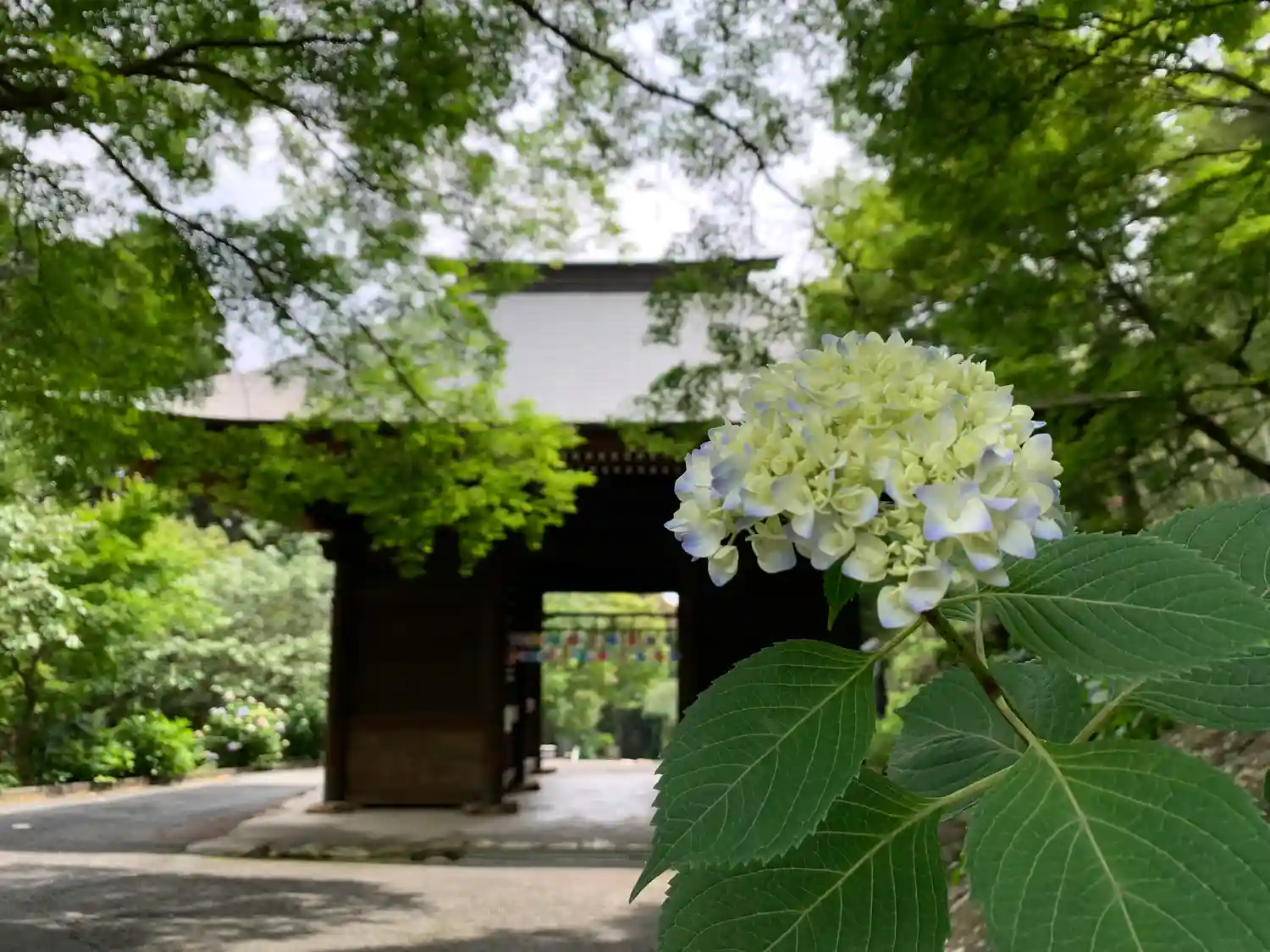 秘蔵の像のご開帳に普門寺へ行って来ました、青もみじの新緑が綺麗で少し早い紫陽花が咲いていました。
