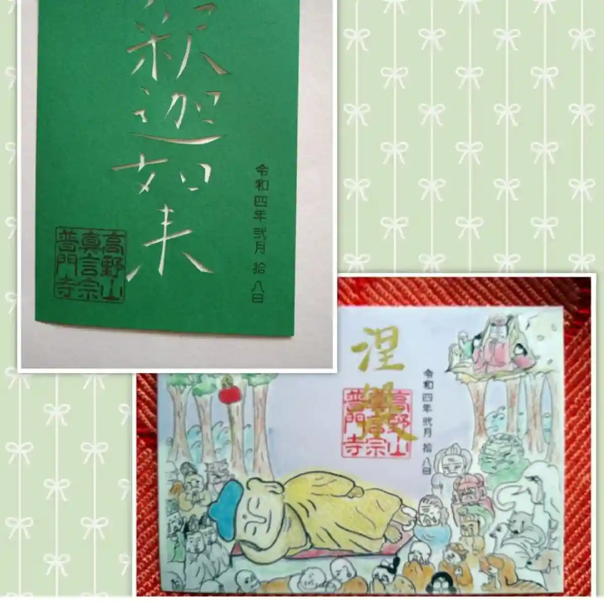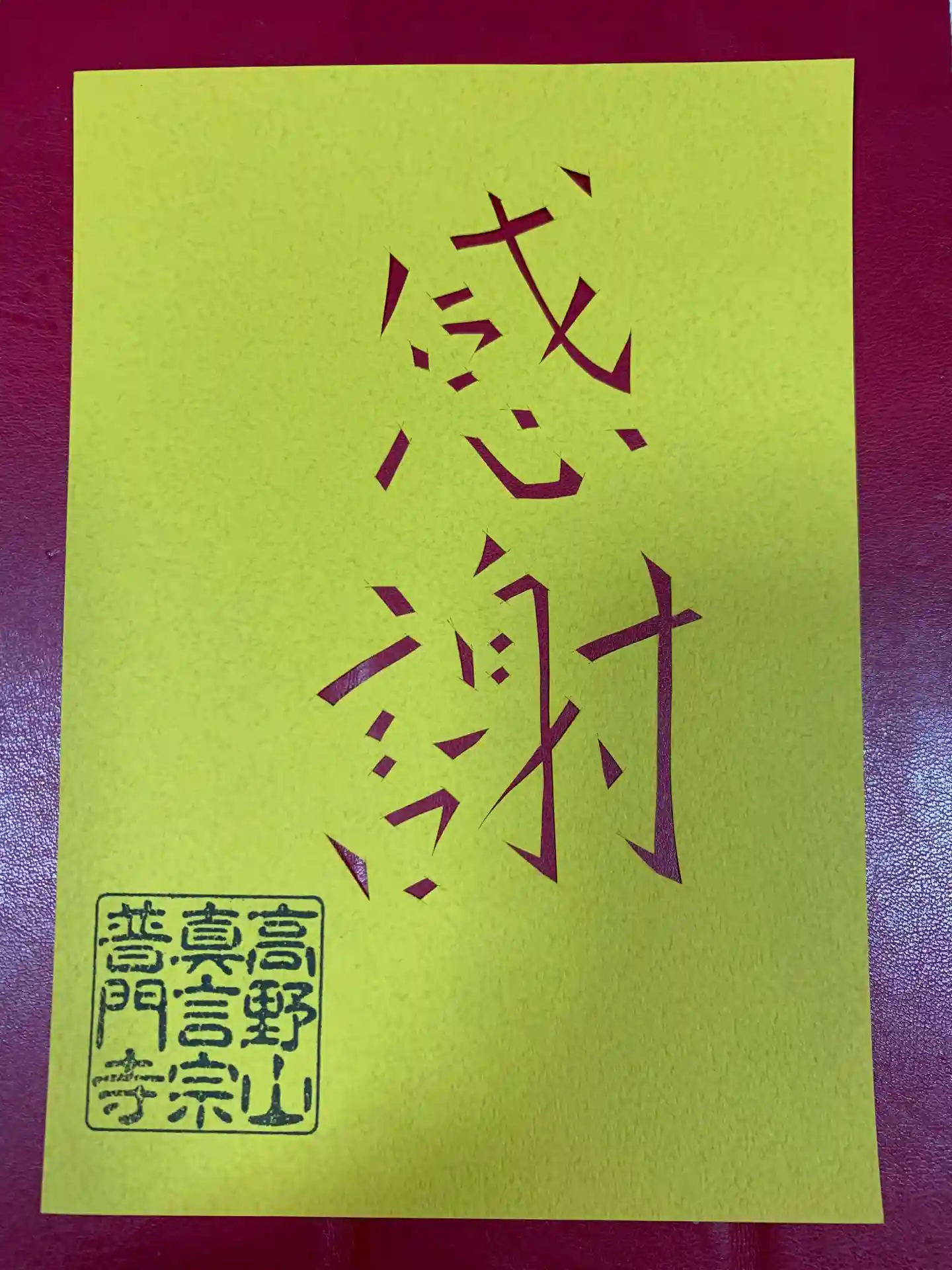 「切り絵 御朱印」先代住職が手切りしています。
