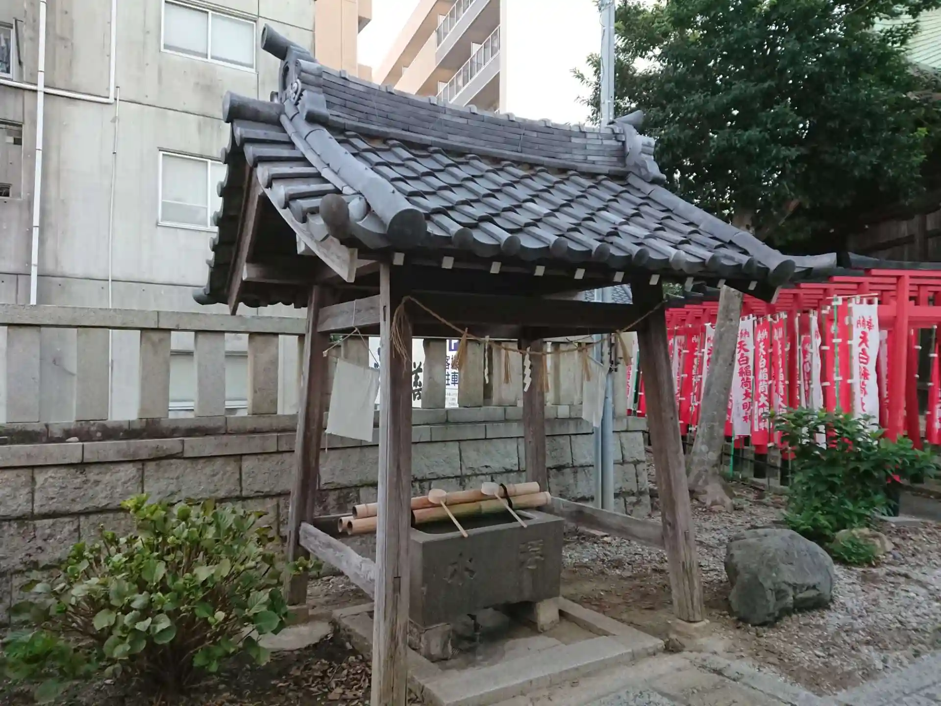 市街地の中にあって狭い境内に社殿があります。