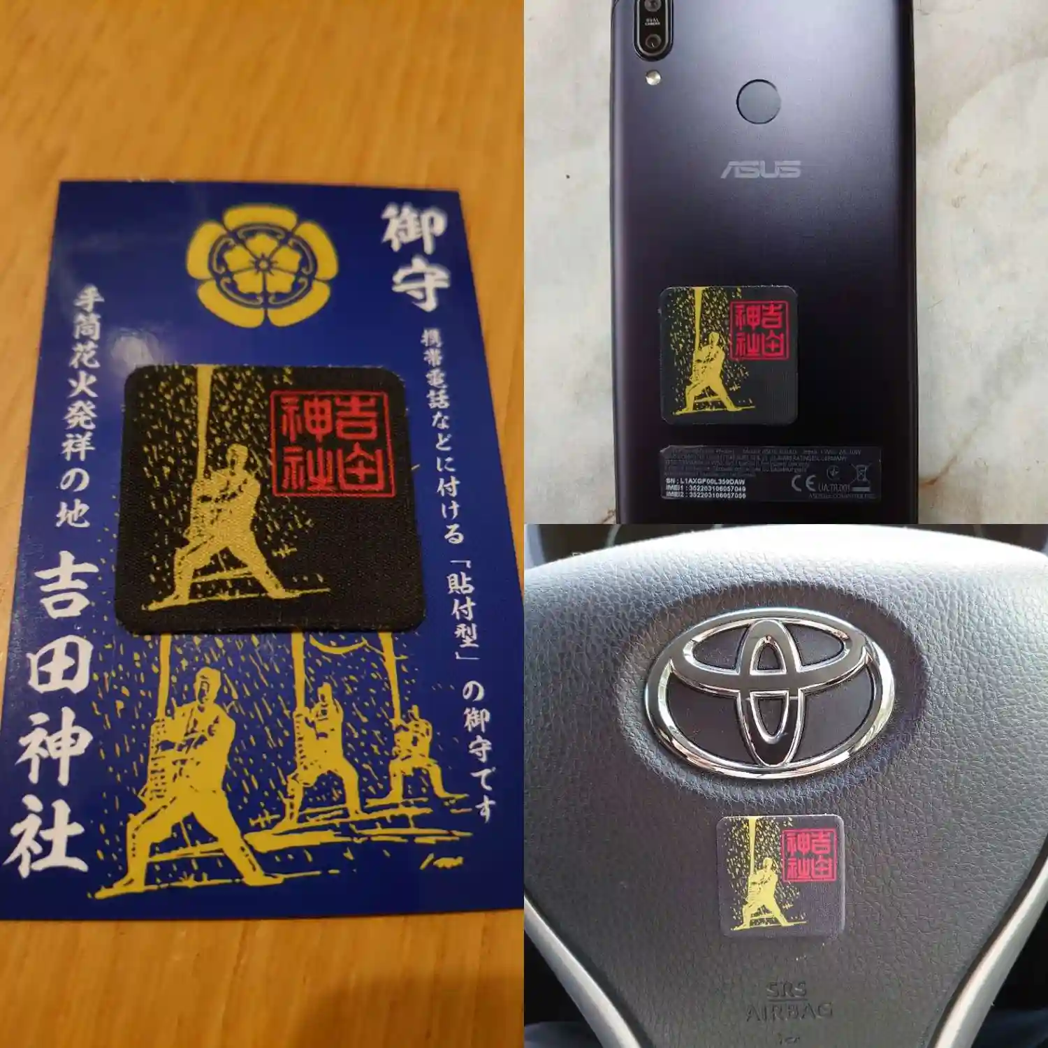携帯などに付ける貼り付け型の御守です。