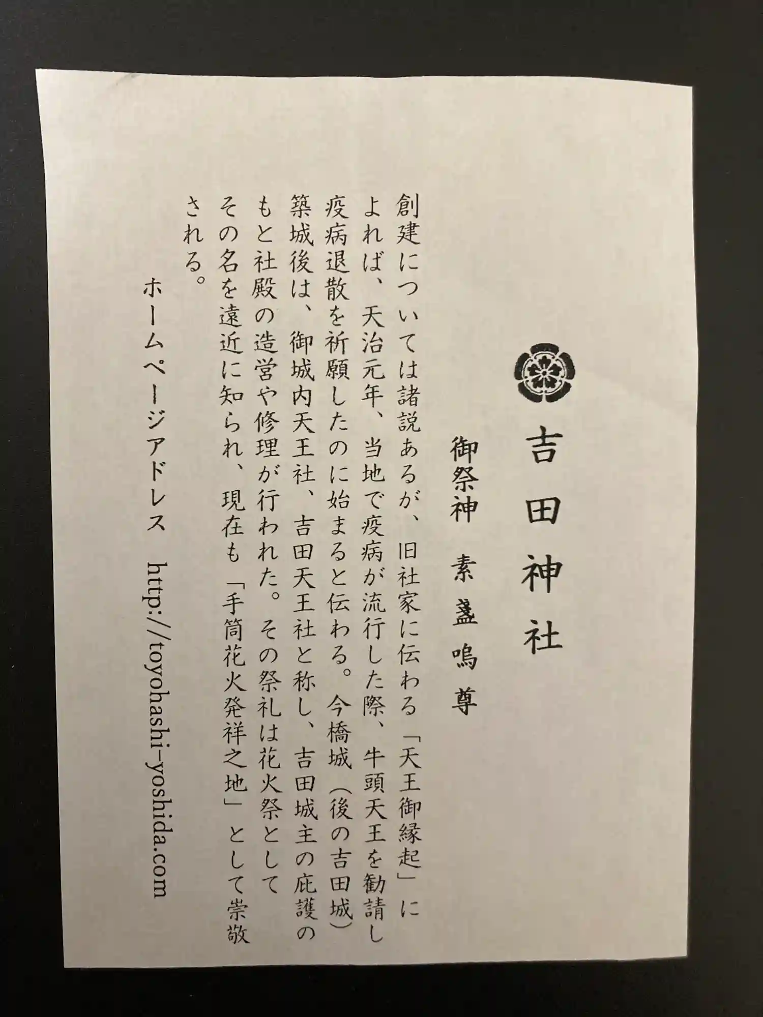 吉田神社例祭、通称「豊橋祇園祭」の御朱印です。