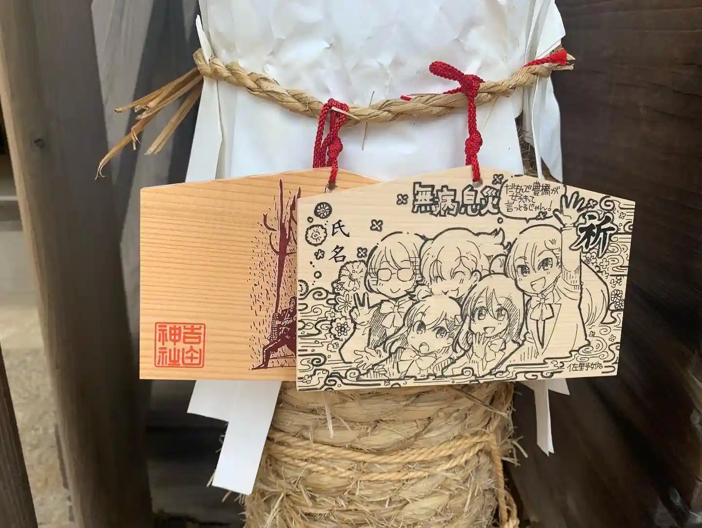佐野妙先生の豊橋を舞台にした漫画「だもんで豊橋が好きって言っとるじゃん」の絵馬が飾られています。