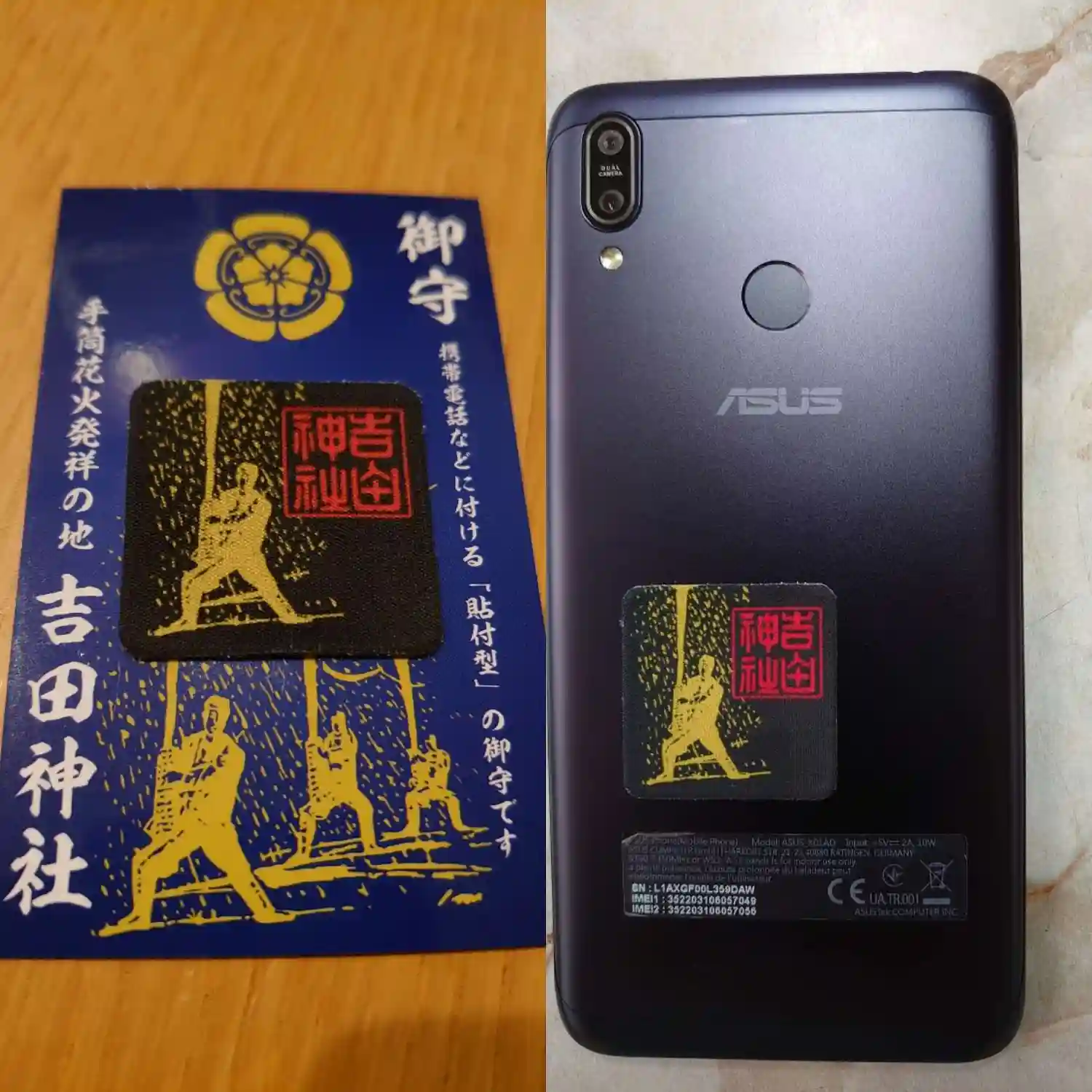 スマートフォンなどに付ける貼り付け型の御守です