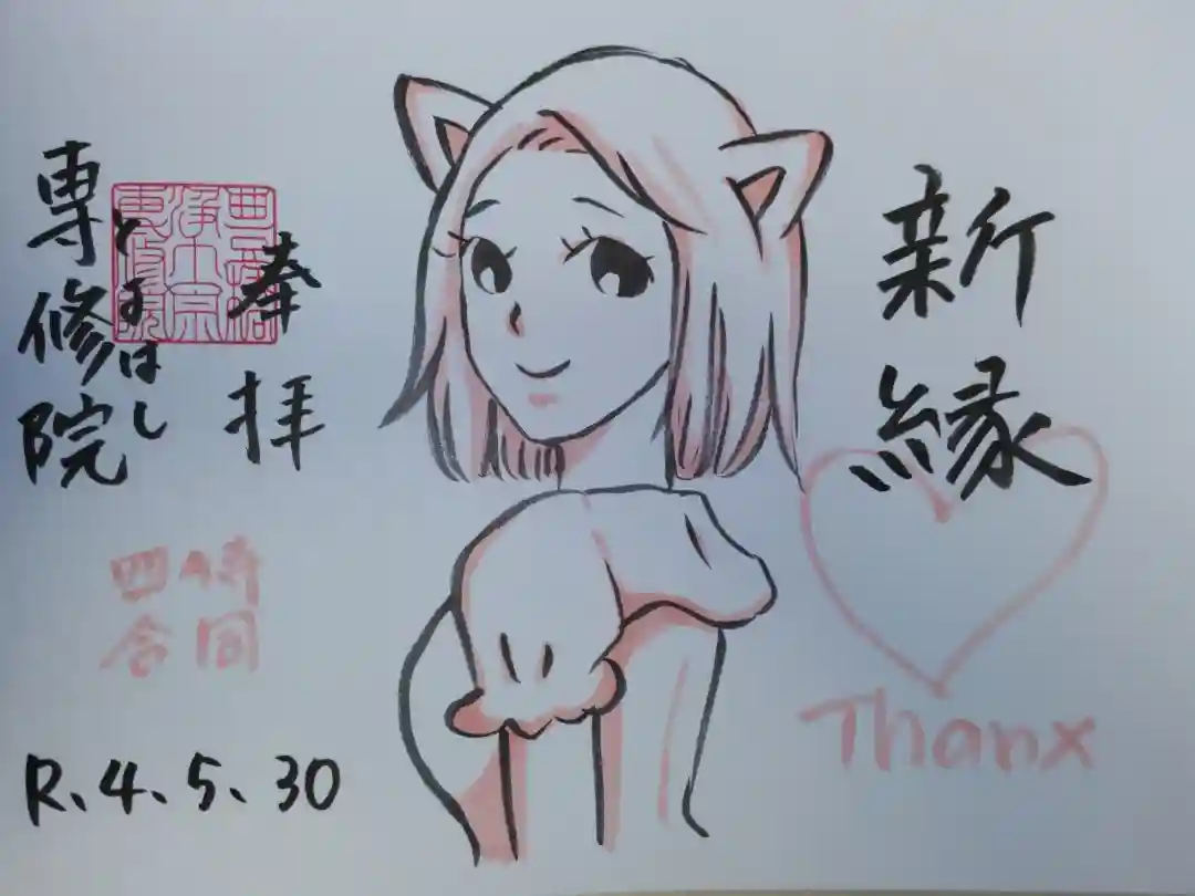 浄泉寺さまの四箇寺御朱印会にてお書き入れいただきました。新縁、猫の女の子イラスト